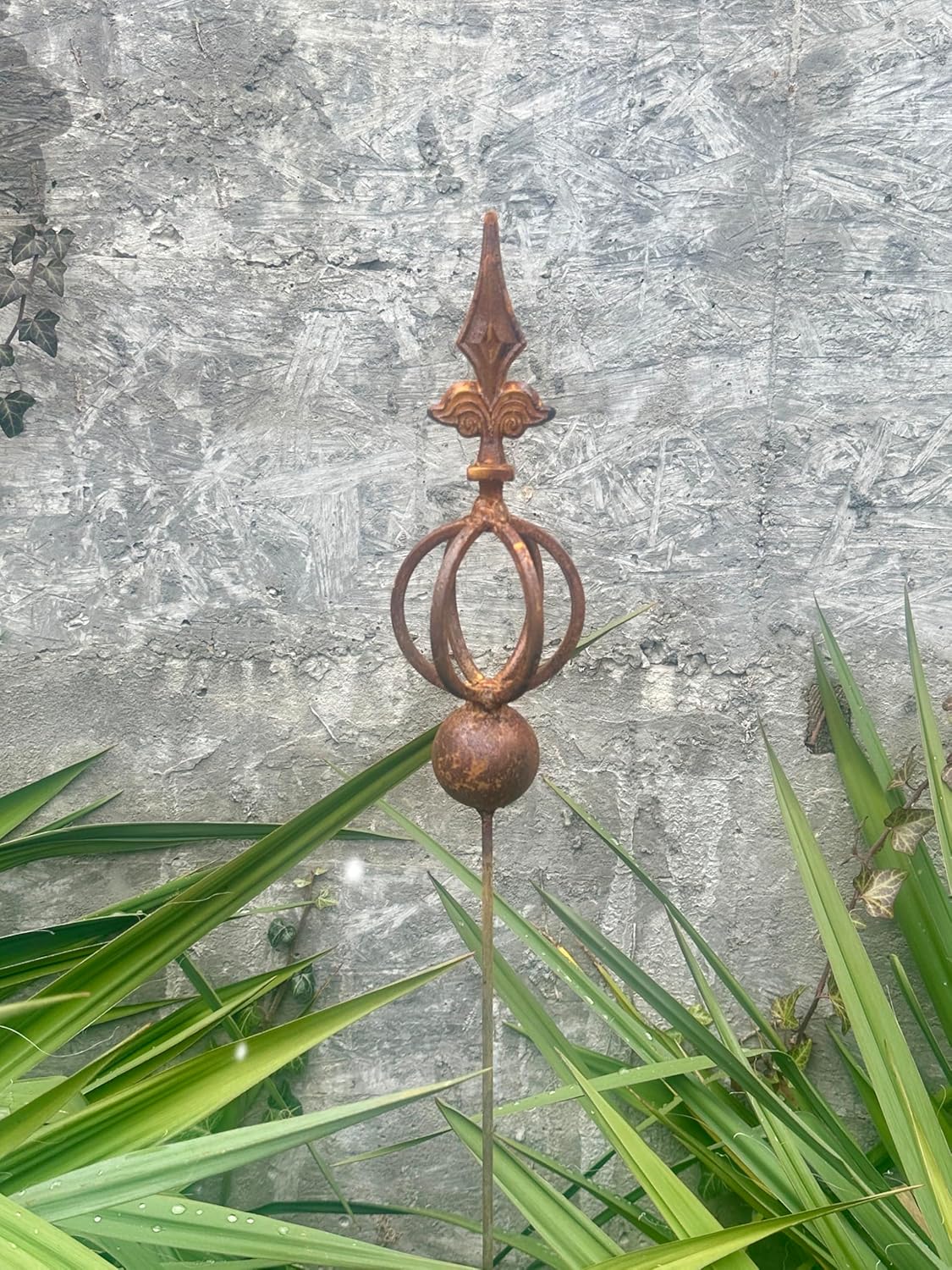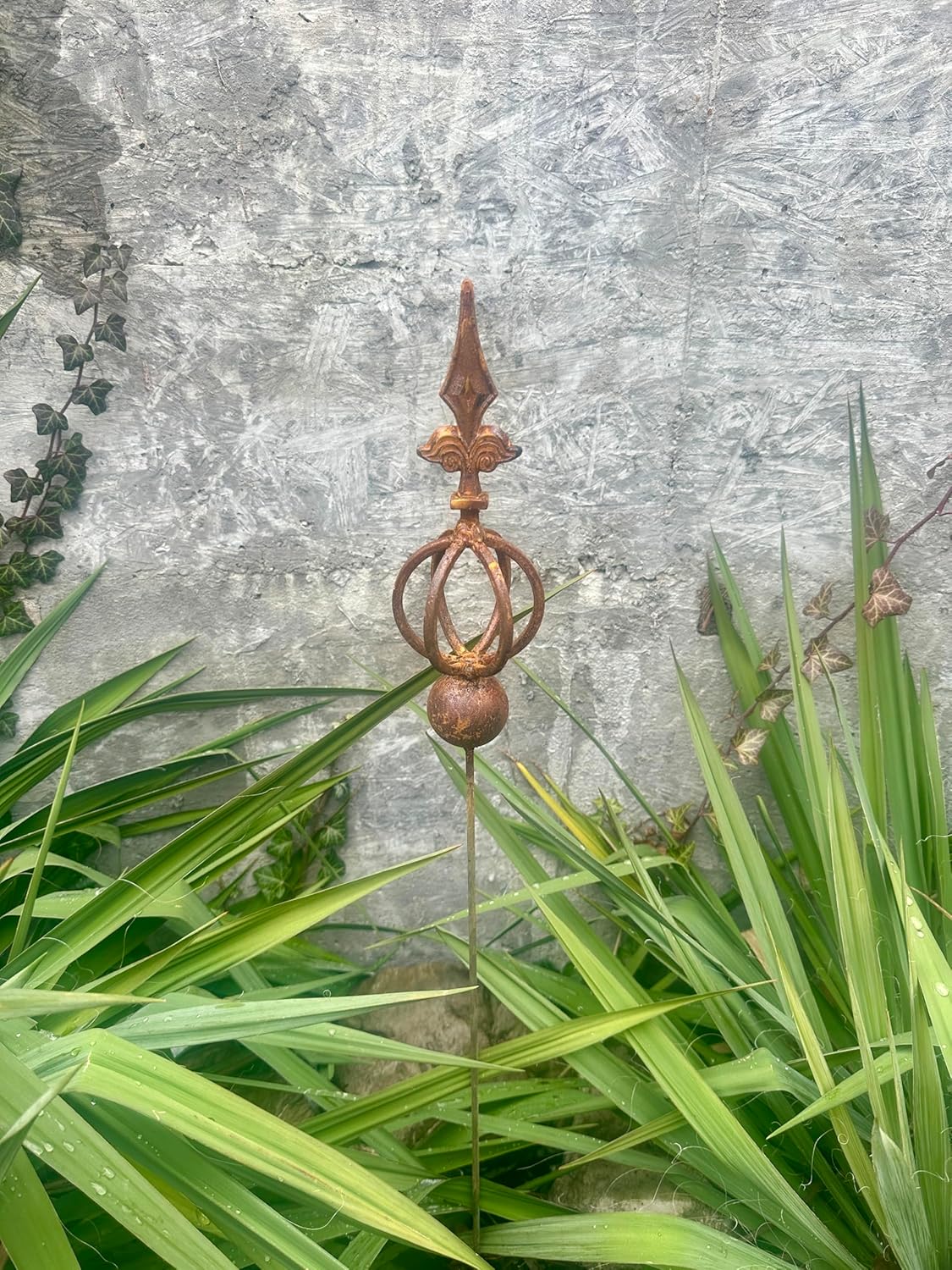 This Rustic metal garden finial will place decorative accent in the garden compositions and landscape, create an atmosphere of romance and coziness in your home. This rusty metal art could be used as decoration at your home, in your garden, backyard, terrace or entrance to your home. This yard decor made from natural metal and it covered with a natural rust. This rusty garden decor can be used all year round, it is not afraid of precipitation, direct sunlight, etc.