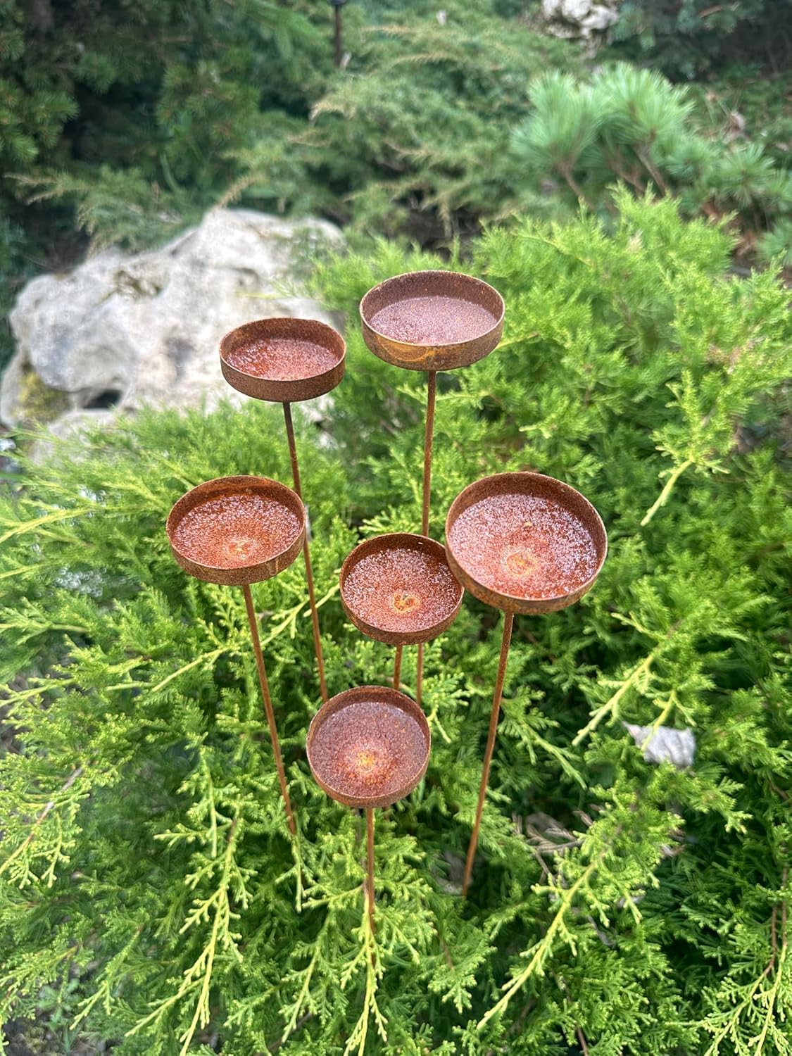 This Rustic metal flowers set of 6 will place decorative accent in the garden compositions and landscape, create an atmosphere of romance and coziness in your home. This rusty metal art could be used as decoration at your home, in your garden, backyard, terrace or entrance to your home. This yard decor made from natural metal and it covered with a natural rust. This rusty garden decor can be used all year round, it is not afraid of precipitation, direct sunlight, etc. Elevate outdoor spaces with our exquisite garden decor, an ideal gift for passionate garden lovers. Whether it's a birthday, anniversary, housewarming or any special occasion, this unique and beautifully crafted addition will bring joy to their green haven.