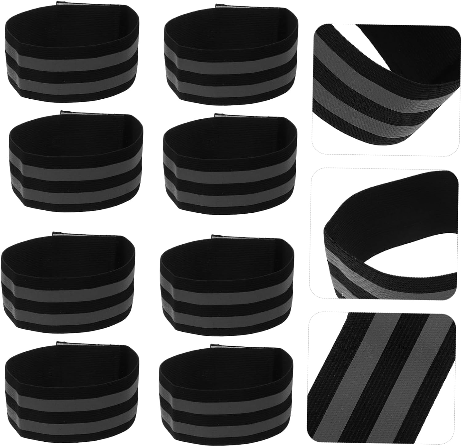 Package Include 10 x reflective bands Features -Color:Black reflective belt for running -Material:Elastic band running strap -Size:34.00X5.00X0.50cm/13.36X1.97X0.20in visibility reflective straps -Size:14.30X5.00X0.50cm/5.62X1.97X0.20in walking reflective strap - Luminous Night Strap is perfect present for your friends and sports lovers reflective arm straps. - High visibility in the dark and at night. You can see the reflective strap from any degrees. To keep from getting hurt reflective band for outdoor. - Adjustable band. It is elastic, which can be adjusted conveniently to your size sports reflective strap. - Made from carefully selected material, it is user-friendly and reusable. Highly reflective. for night walking and running outside reflective walking gear. - Easy to use. Reflective design allows you to stand out when running at night, providing security safety reflective straps.Goods Informationreflective belt for riding The Reflective Band has good elasticity and stretchy for most people.wrist strap Made from stable material, suitable for your night walking and running.sports reflective strap It is a for those outdoor activities enthusiasts.high visibility reflective band Also, it is great for runners, and cyclists