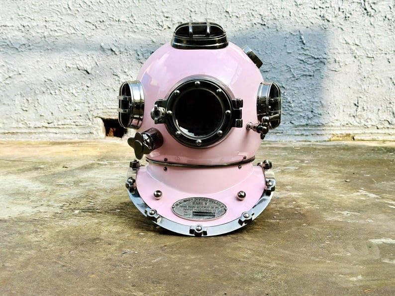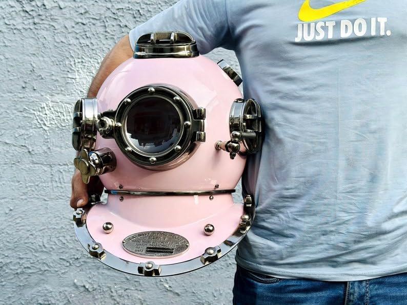 Premium Quality Well Made Diving Helmet Materials : M Steel, Aluminium And Glass Size : 18" Inches Approx. Top Head Measurements : 116" x 12" x 17" / 40cm x 32 cm x 42 cm Finish : Chrome Plated, As Show In Picture The Diving Helmet Is Great Addition To Your Helmet Collection Usage : Table Top Decorative, Room Decorative, Home And Office Decorative, Best Gifts For Him
