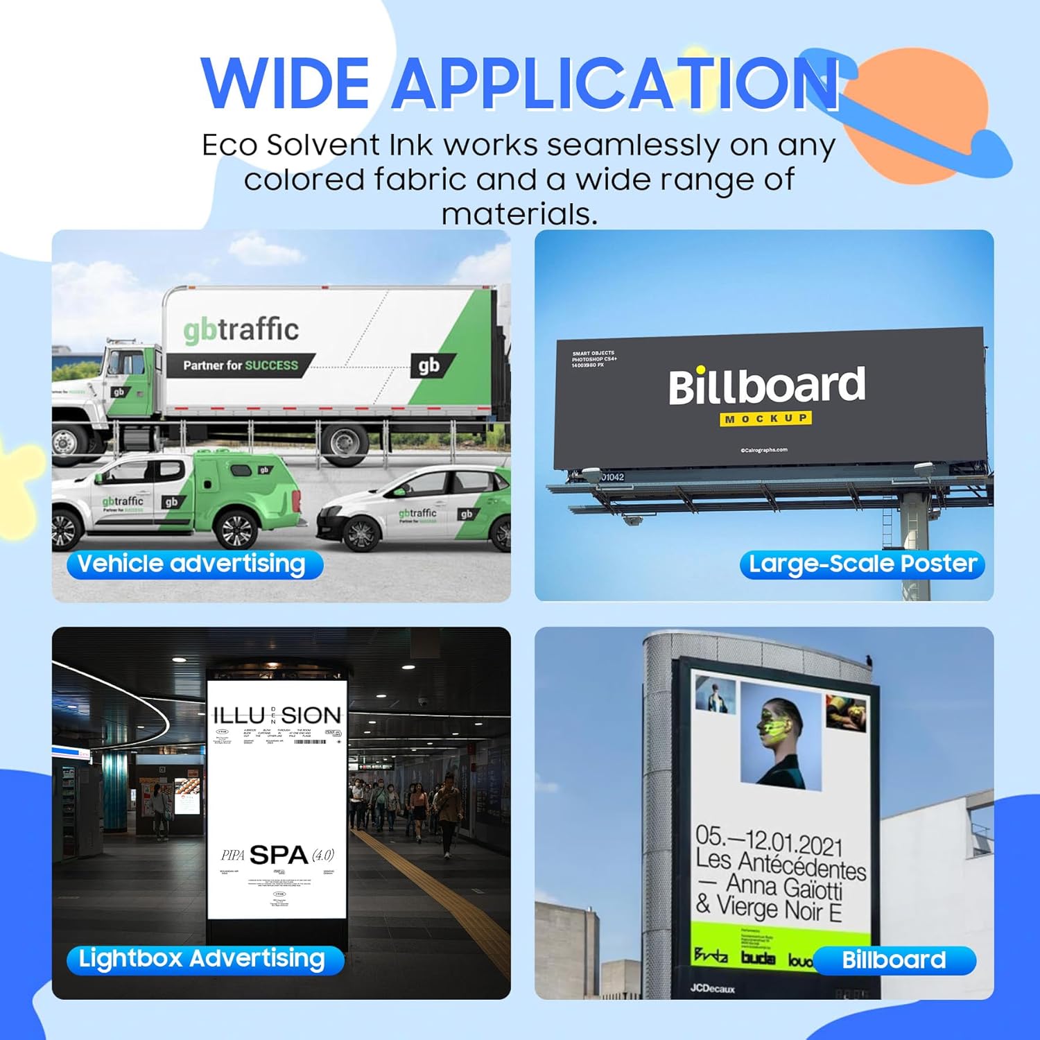 | Print media | Banner paper, Fabric |