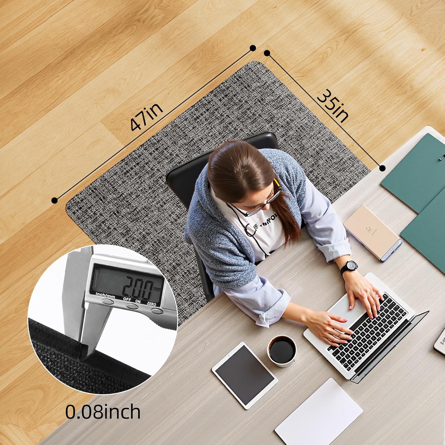 Yecaye Desk Chair Mat for Hardwood Floor, 48"×36" Office PVC Computer Chair Mat, Floor Protector for Rolling Chairs.Office Chair Mat, 35 x 47in Heavy Duty Hard Floor Protector, Computer Desk Mat for Rolling Chairs, Home, Office, Black&White.