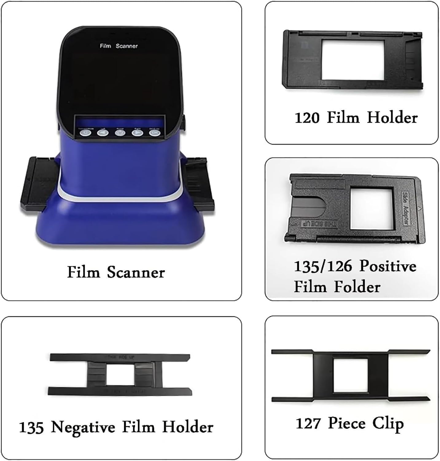 Interface: USB2.0Sensor: 140,000-pixel 1/2.3-inch CMOS sensorDisplay: 4.3-inch color screenPixels: 22 millionScan quality: 3200DPIFilm type: negative, black and white, positive (slide)Film type: 135 film, 120 film, 126 film, 127 film (positive, negative, black and white)Light source: LED backlightBuilt-in memory: 128MExternal memory card: Maximum support 128GB(USB adapter)Language: Simplified Chinese/Russian/English/French/German/Italian/Spanish/JapaneseSupport: XP/ISTA/7/8/10 MAC10.7.3Size: 177*118*92mm highWeight: 580gProduct includes: scanner, slide holder, USB cable