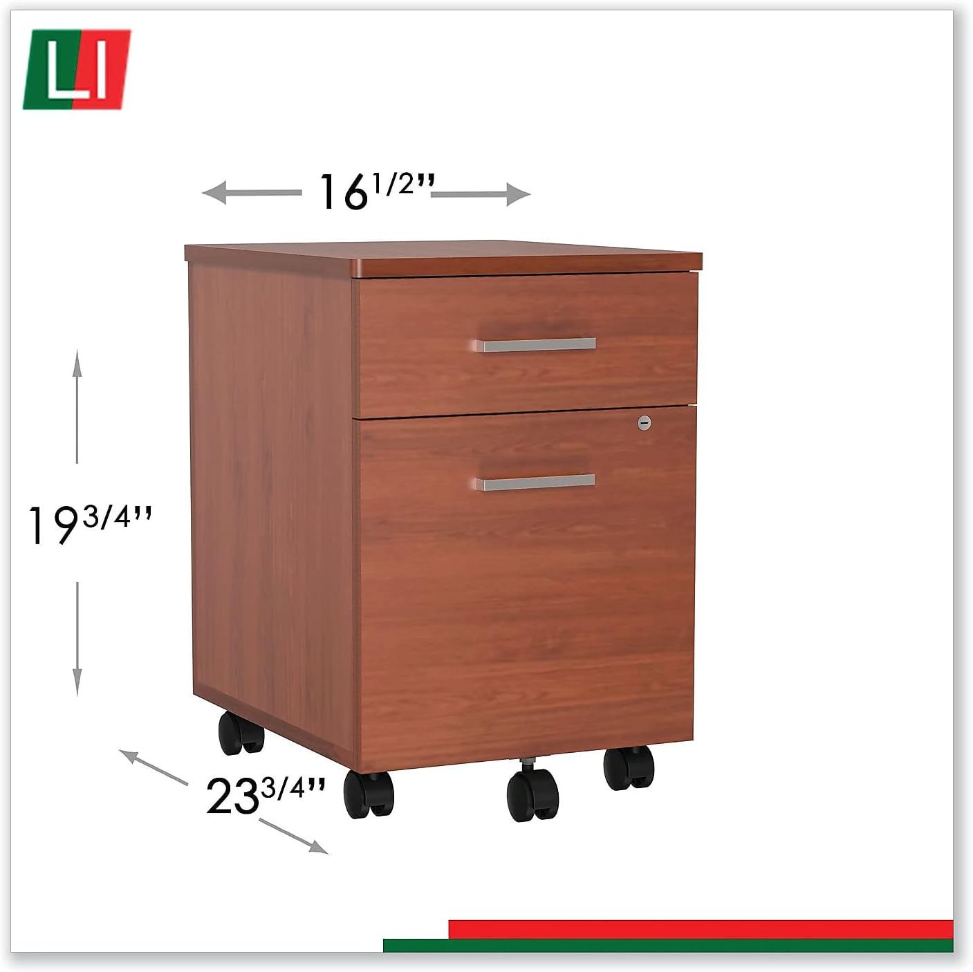 Fits under desk to conserve valuable space. Scratch- and stain-resistant wood grain laminate frame with durable edge. Full-extension locking metal drawers operate on steel ball bearing slides and accommodate letter- and legal-size files. Five-hooded dual-wheel casters for easy mobility. No assembly required.