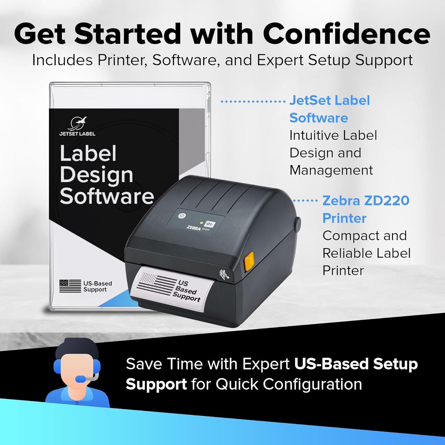 Zebra ZD220 Direct Thermal | 203 DPI | ZD22042-D01G00EZ | USB Connectivity | Standard EZPL | 4 in Width | Includes Jet Set Software