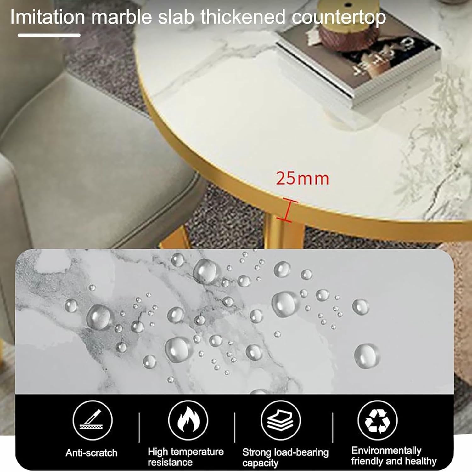 ___☆☆☆☆☆ This table is sure to add a certain aesthetic to your home, both you and your guests will love it ☆☆☆☆☆_________(. ᴗ ) This Office Conference Room Small Dining Table Set is simple in design, give you the ultimate experience. →☆ Imitation marble thickened tabletop, environmentally friendly paint-free plate, safe and reliable→☆ U-shaped seat surround design, arc structure close to the back, improve comfort→☆ Frosted iron legs, anti-wear and anti-rust, easy to clean, long-term use without deformation●Features: simple and elegant, space-saving●Color: gray●Table leg color: gold●Style: simple and modern●Standard structure material: metal●Cushion material: leather●Table shape: round●Table material: imitation marble slab tabletop●Table diameter: 80cm/31.5in●Chair total height: 73cm/29in●Package: 1 table and 4 chairs (other things are decorations, not included)●Applicable scenarios: cafe, living room, kitchen, terrace, restaurant, lounge, reception room, office, outdoor, milk tea shop, bakery, hotel, negotiation room, bar, etc.