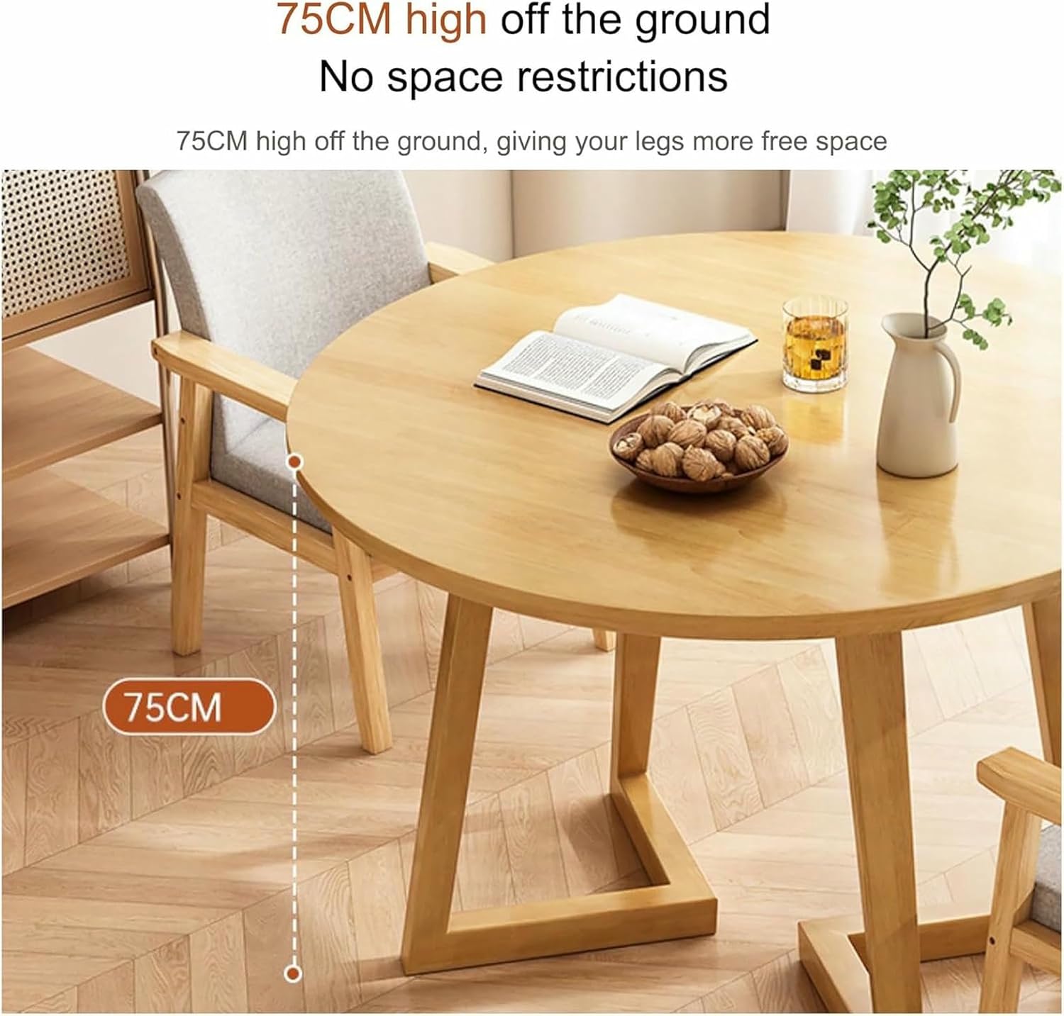 Are you still worried about the crowded and cramped environment during team negotiations?—— This negotiation table set ladder is a space magician! With the open table design, you can speak freely while sitting around the table, and say goodbye to the embarrassment of physical collisions. Meetings, negotiations, and brainstorming can all be handled with ease. —— Whether it is a corporate meeting room, studio, coffee shop, or live broadcast room, it can be perfectly adapted and easily handle various scenes. · Product name: table and chair combination· Color: Walnut, Wood· Features: simple, spacious, space-saving· Style: simple and modern· Workbench shape: round· Table material: solid wood· Table diameter: 60cm/24in, 80cm/31.5in, 100cm/39.5in· Table height: 60cm/24in, 75cm/29.5in· Chair material: solid wood· Applicable scenarios: cafe, living room, kitchen, terrace, restaurant, lounge, reception room, office, outdoor, tea shop, bakery, hotel, business meeting room, bar, etc.· Applicable number of people: 4 people· Packing method: assembly type· Packing list: 1 table, 4 chairs (other items are decorations and are not included)