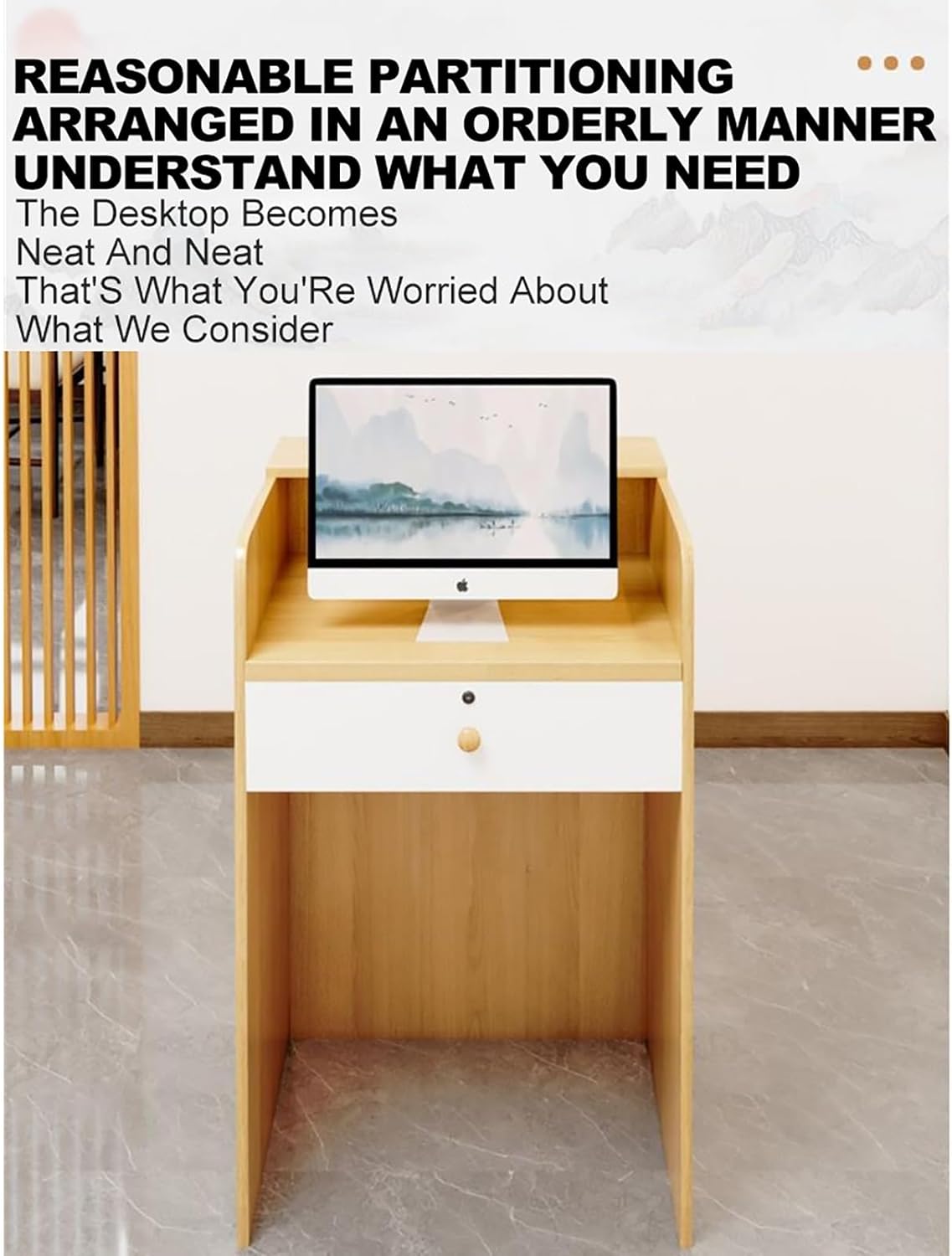 Reception Desk with Counter,Modern Retail Counter for Checkout,Reception Desk,Home Office Desk,with Lockable DrawersReception Desk is not only a functional working space - it is a stellar centerpiece crafted to transform your lobby, beauty salon, clinic, restaurant, or office space.Reception Desk with LED Lights for Lobby Beauty SalonThe Front Counter Desk is equipped with an LED light bar.Different lighting colors can be easily matched to different venues, matching different lighting colors to different décor styles. High-Quality of HardwareWe take your privacy and property security very seriously. Now you can enjoy a more private work area, provides an added level of security while creating a dignified look.Stream-line design with smooth veneer surface, this reception desk highly shows modernization and elegance for welcoming customers and clients.Simple and clean design concept effectively organize your work space, gives an aesthetic look.including drawer slides, cabinet door aisle chains, and keyboard slides. Opening and closing the tray smoothly !Sufficient Storage SpaceThe spacious desktop with keyboard tray has enough room for a computer, cash register and even promotional materials. Whether it's a lobby, salon, clinic, restaurant or office space, it creates a stunning atmosphere!Material: Engineered Wood, MDFFocus on Details for Good ProductsReception DeskHigh-quality Metal RailThe Reception Counter Table has 1 drawers, which are equiped with metal slides. Open and close drawers smoothly.Reception DeskSoft Open & Close HingesHigh-quality hardware is used for the Front Counter Desk to make opening and closing doors quieter and easier.Notice:1. Note: Due to the particularity of the furniture, there will be slight errors in the finished product, which is normal. The data is for reference only and must be based on the actual product. We hop