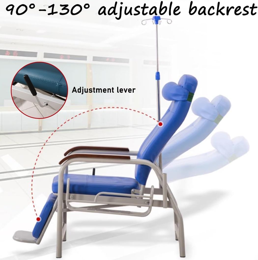 Welcome to YVYKFZD store:- The backrest linkage design provides a safe and relaxing infusion, blood collection and waiting experience. The solid structure and convenient make it the choice of medical staff and patients- Reclining chair with a simple structure, reserved holes, and complete installation parts in the package can help you complete the installation quickly and accurately* Product Parameters:- Product Name: Waiting Room Chairs, Reception Chairs, Guest Chairs, Lobby Chair, Infusion Chair, Waiting Room Sofa, Reclining Chair, Phlebotomy Chair- Color: Dark green, sky blue- Material: Metal + leather + sponge- Features: Space-saving, versatile, stylish design, light weight* Package Includes:- 1 x Waiting area chairs* Note:1. Simple assembly is required after receiving2. Please check the size before buying. Due to manual measurement, an error of 0-3cm will occur. Hope for understanding3. Please note that due to different monitors, there may be slight color difference, please understand