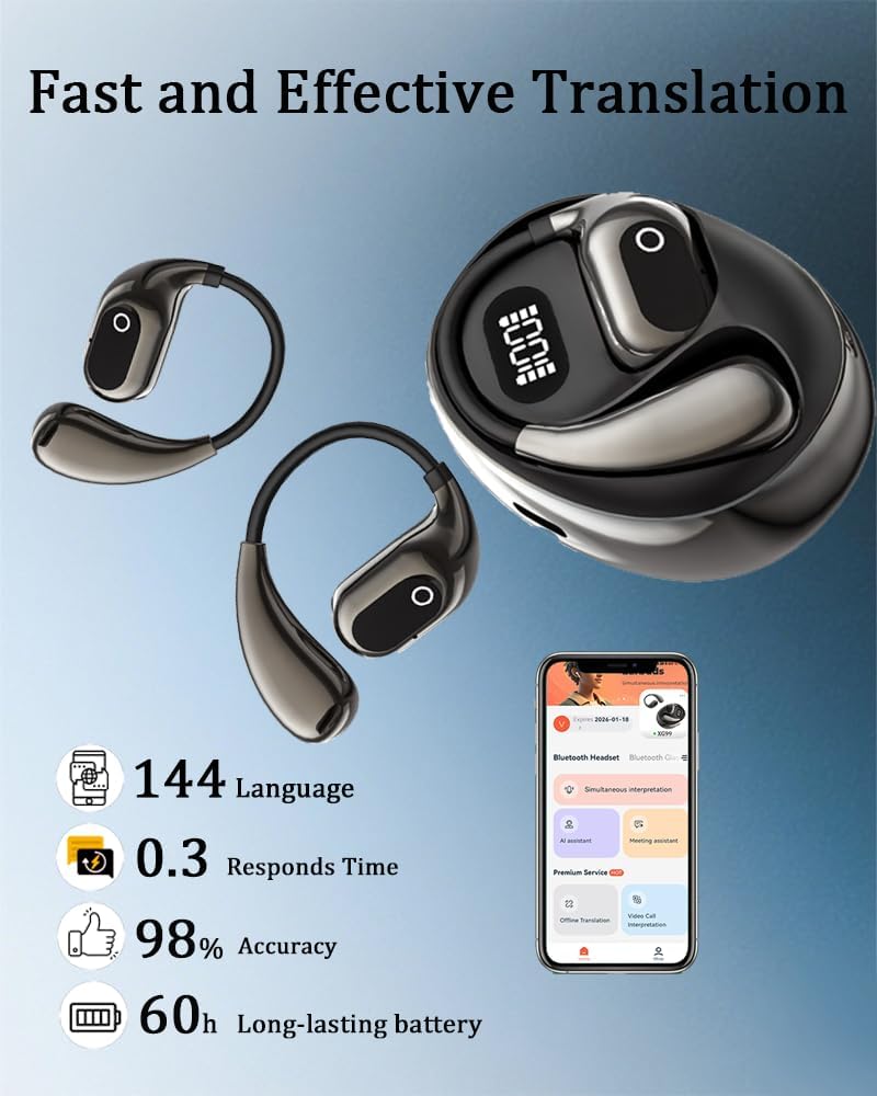 Experience seamless global communication with our AI translation earbuds that provide real-time two-way translation across 144 languages including Chinese, English, Spanish, and Japanese. With 98% accuracy, these bluetooth translator earbuds are perfect for international business meetings, overseas travel, and cross-cultural conversations. The voice translation technology allows instant switching between language pairs, making it an essential travel gadget for abroad trips.