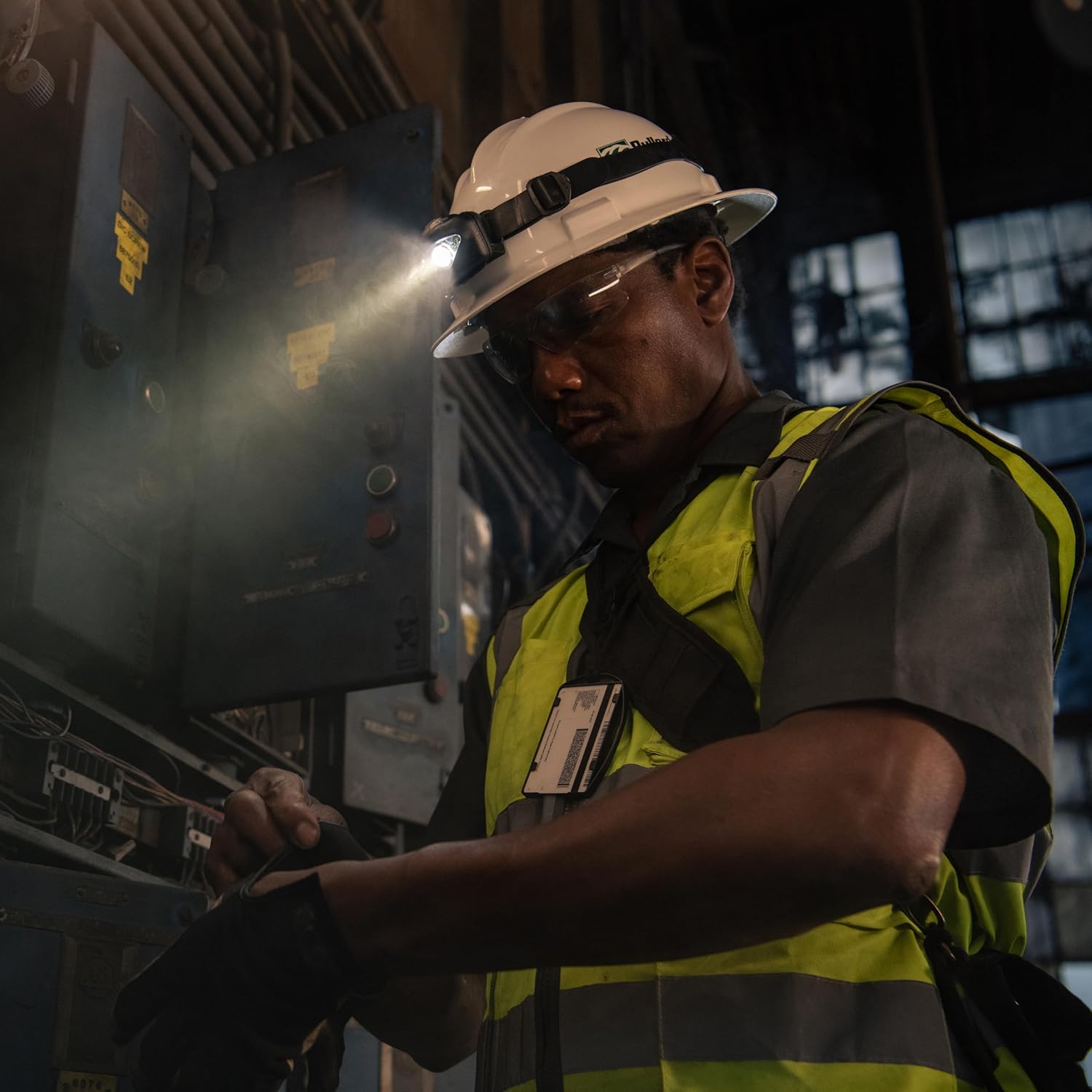 The Vizz Industrial conquers any situation by combining two beam profiles into a compact, self-contained light to add to your hard hat.One Maxbright LED provides a long-throw, bright white spot beam. Four white Ultrabright LEDs provide a flood beam for up close work and wider viewing angle. 3 AAA Alkaline batteries are included. Regulated circuitry makes for consistent power output over battery lifespan. The Vizz Industrial is also alkaline compatible for reliable operation in a wider temperature range.Includes Industrial Headlamp Kit: Rubber hard hat strap, 3M Dual Lock, Standard nylon headstrap