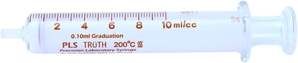 Truth Calibrated Glass Syringes (PLS) are Certified Volumetric measuring Instruments as per Class A ISO 4788. The syringes offer a jerk free experience while collecting and dispensing accurate liquid doses (~0.5%-1%) through a 100% inert liquid path of borosilicate glass that also withstands higher pressures. Recommended for your Good Laboratory Practices (GLP) / GMP Certified facility. Truth Calibrated Glass Syringe (PLS) 10ml (Glass Luer Tip) CT Truth Calibrated Glass Syringes (PLS) are measured by gravimetric measurement. Individual calibration certificates / readings are provided for each individual syringe. The Volumetric Calibrated syringe is best suited for plastic sensitive / plastic non compatible liquids. Recommended for your Good Laboratory Practices (GLP) / GMP Certified facility. The Barrel of the glass syringe is made out of hard borosilicate Glass that has outstanding chemical resistance. This material also provides a heat resistance suitable for dry heat sterilization and good wear & tear resistance. High machining precision is used to maintain slideablity between barrel and plunger. PLS Syringe feature internally frosted individually barrels and plunger. Matching serial number on barrel and plunger ensure easy assembly on superior performance. The opaque frosted look becomes clear when in contact with liquid. On drying it regains the frosted look. These syringes can withstand higher temperatures and pressures. These syringes are individually packed boxes. Widely used in pharma companies and manufacturing facilities in various departments including quality control, quality assurance etc., through their manufacturing, research and development, analytical etc. departments. NOTE : “Customs duties, taxes and any import charges imposed by U.S. authorities may apply to shipments — if required, these will be payable by the recipient.”