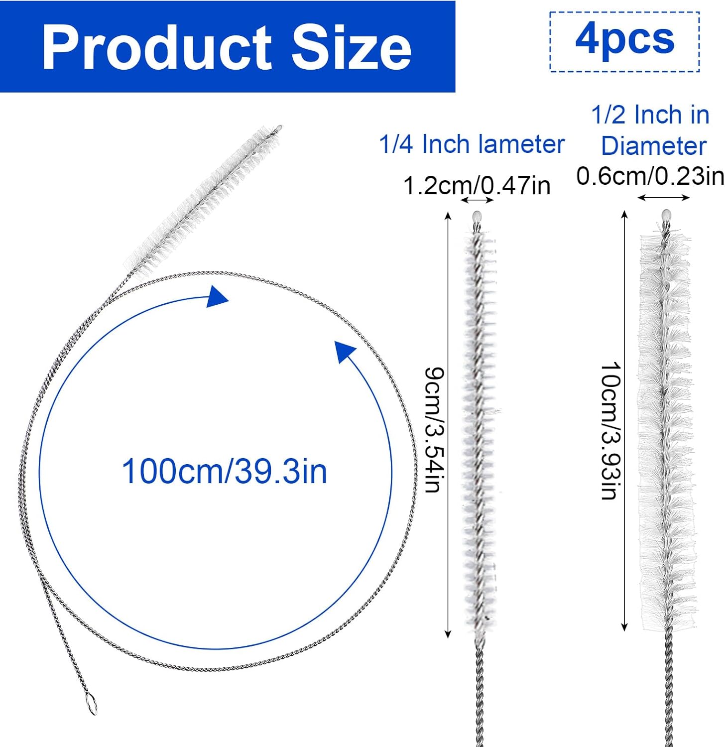 Product Description:"----------------- WELCOME TO OUR SHOP -----------------Packing List: 4 Pack 39inch Tube Cleaning BrushesSpecificationSize: 1m/39.37inColor: SilverMaterial: Stainless Steel + Nylon