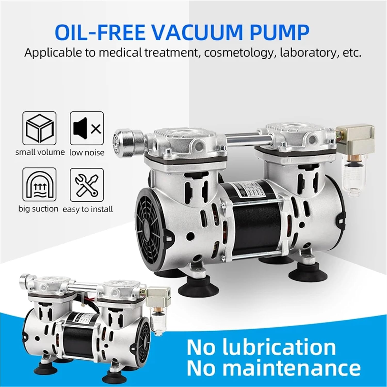 Vacuum PumpsVoltage : 220VPower : 260WInterface size : G1/4Appearance size : 253*133*180mmPumping speed : 60L/minNegative pressure : 91KpaInstallation size : 127*83mm