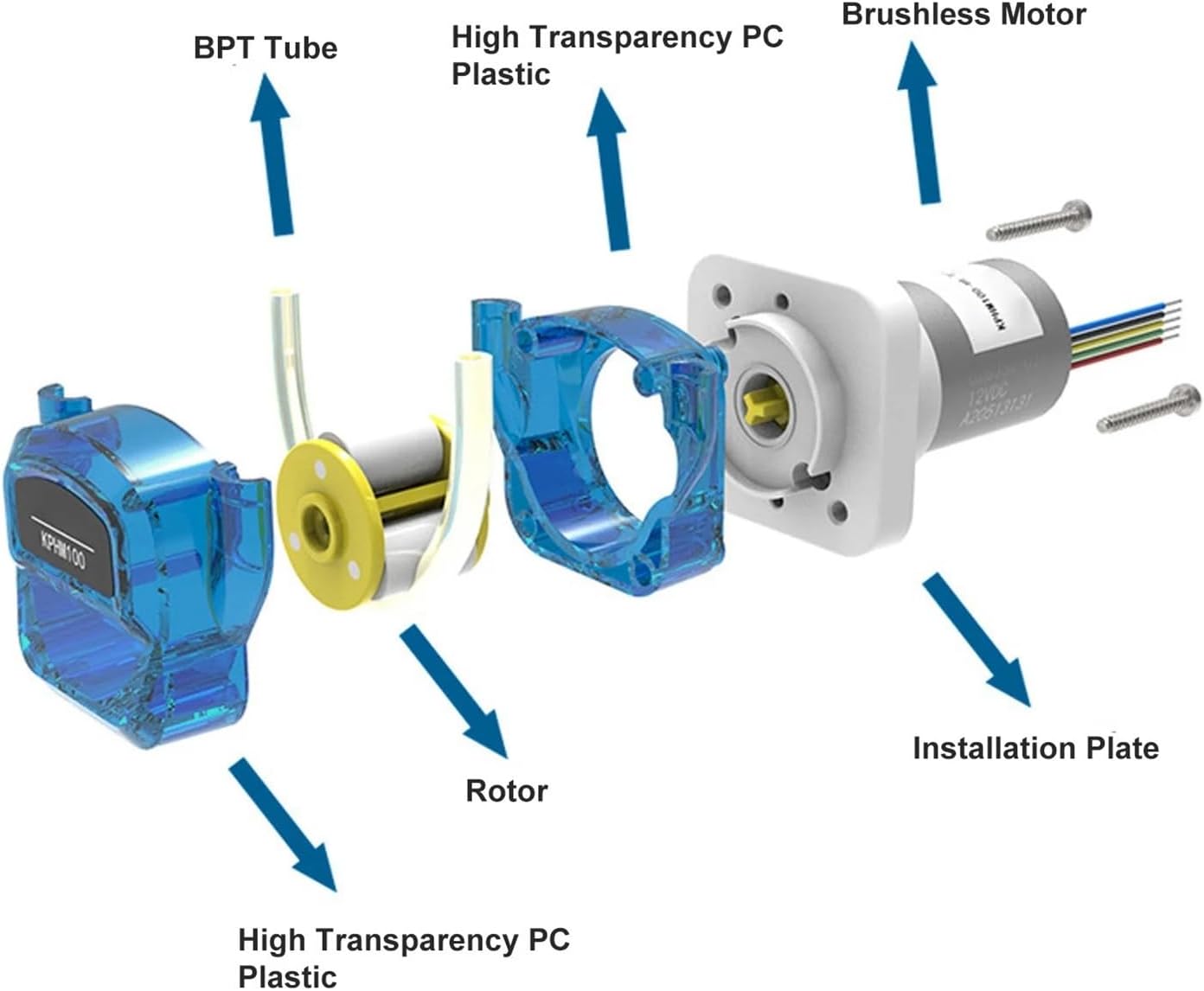 Dosing PumpsSpecification:Item Type: Mini Peristaltic PumpMaterial: Engineering PlasticPump Pipe Material: BPTModel: KPHM100 HAB10Flow Rate: 180ML Per MinutePower: 6WControl Method: On Off Control, Drive Board ControlTransmission Method: Gear Transmission, First Reduction Ratio 1:14, Second Reduction Ratio 1:196Pump Tube Life: BPT 1000HMotor Life: 800HPump Pipe Flow Rate: Pump Pipe Code: B10Inner Diameter and Outer Diameter: Approx. 3mm/0.12in, 5mm/0.2inHow to Use:Directly install and use.Package List:1 x Mini Peristaltic Pump