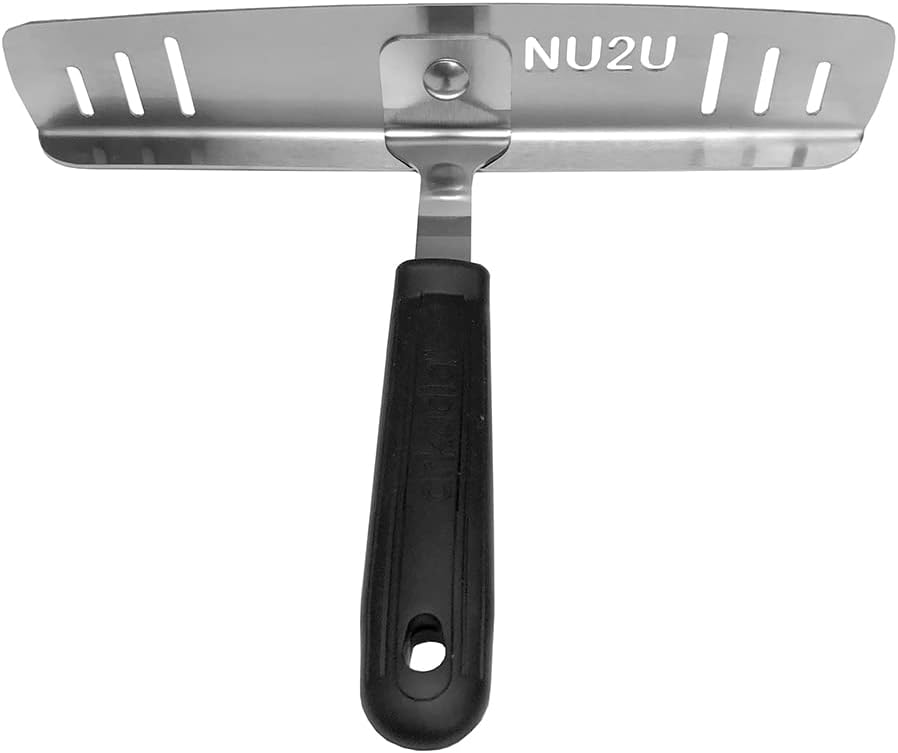 This Door is designed to be used in combination only with NU2U R-10 Lower Mounted shelf or R-5 shelf with the oven running. In testing the use of the baffle door reduced oven heat up times on average by 10 to 15 minutes depending on outdoor temperatures. Constructed of pure 14 Gauge #304 Food grade stainless steel, this heavy material acts like an heat insulation barrier while still providing sufficient opening for exhaust gases to vent out naturally. Use the NU2U Baffle door for faster heat up times, burning the pizza cooking surface clean and for rapid re heat of the oven between pizza launches. Simple two part construction using pure stainless steel hardware keeps cost down and makes storage a breeze and it assembles without the need for tools.The Baffle door includes a very high quality black silicone grip that is rated safe up to 400 Degrees and is the exact same Pan Handle sleeve used in commercial kitchens. NOTE: This item has been designed to provide adequate ventilation to be used with gas on but regardless there is still no approval and/or recommendation from the Oven manufacturer for the use of our heat baffle door, N.B. use at your own risk. NOTE- Door must be used and placed on the NU2U R-5, 5" shelf extension or NU2U R-10 Shelf extension.