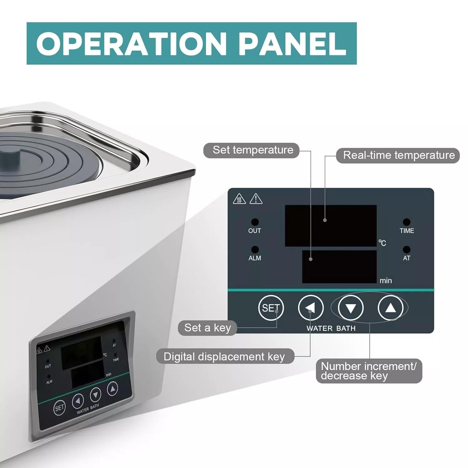 Applications: Suitable for distillation, drying, concentration and warming of chemicals or biological products Model: Single Hope BHS-1 Tem. Variation℃: +10-100 ℃ Power: 300W Tem.Distinguishability ℃: 0.1℃ Temperature display mode: digital display Temperature control range: RT+5°C-100°C Temperature control accuracy: ±0.5°C Resolution: 0.1°C Liner size (working size): φ200*120mm Work Chamber Size: 16X16X13cm Package Includes: 1 X Temperature Water Bath 1 X Manual