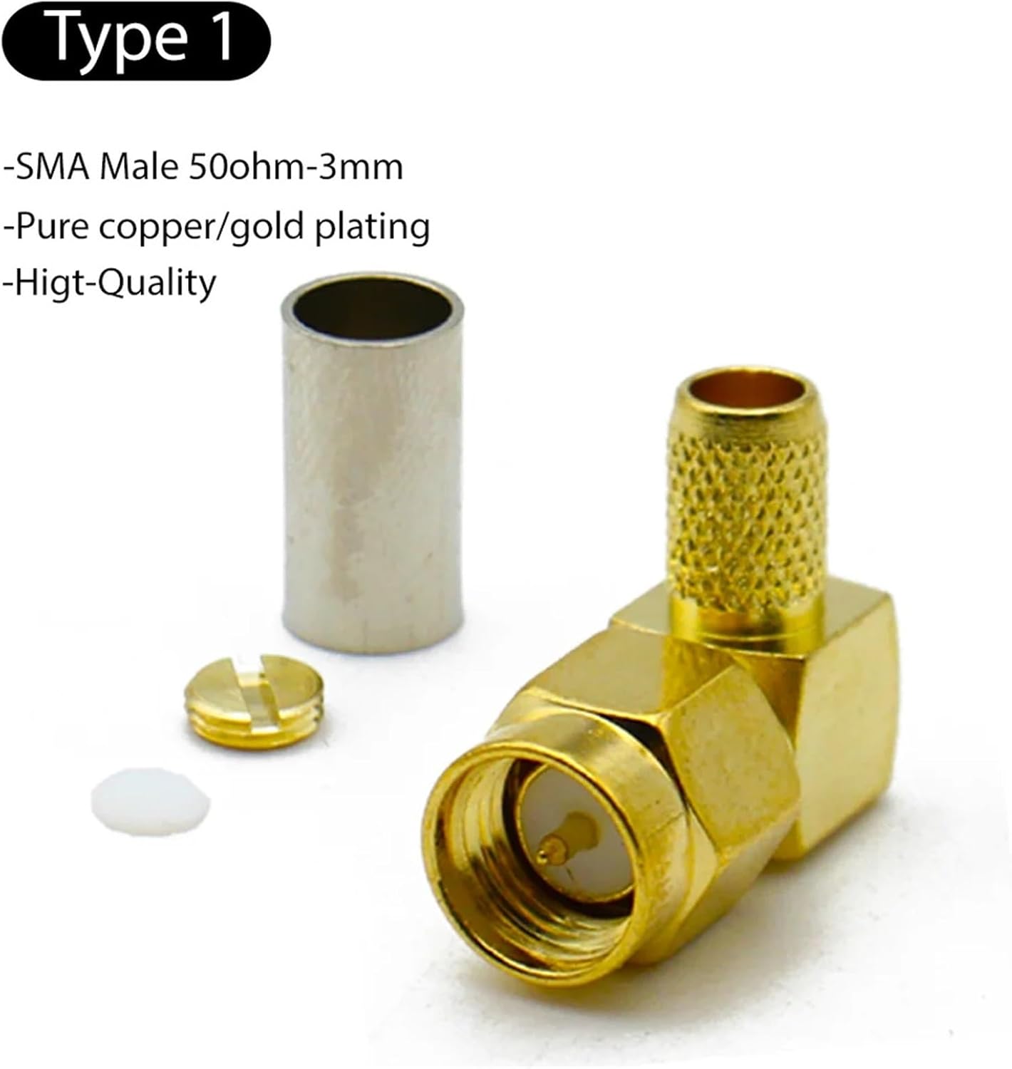 Cylindrical ConnectorsSMA Male Plugs SMA Female Jack Connector RP SMA Female Crimp 90 Degree Right Angle Coaxial Adapter Cable Wire Terminal ==========Model Number : SMA