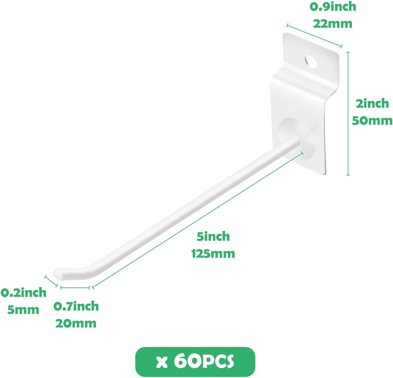 • [Great for Hanging] The unique 45-degree upward end design allows the items to slide down automatically and and organize items well; Round convex cap prevent your goods from falling and protects your hands from scratches. The the slatwall hooks for shelves are suitable for holding various items, firmly hold all of your retail and household needs that you may have.