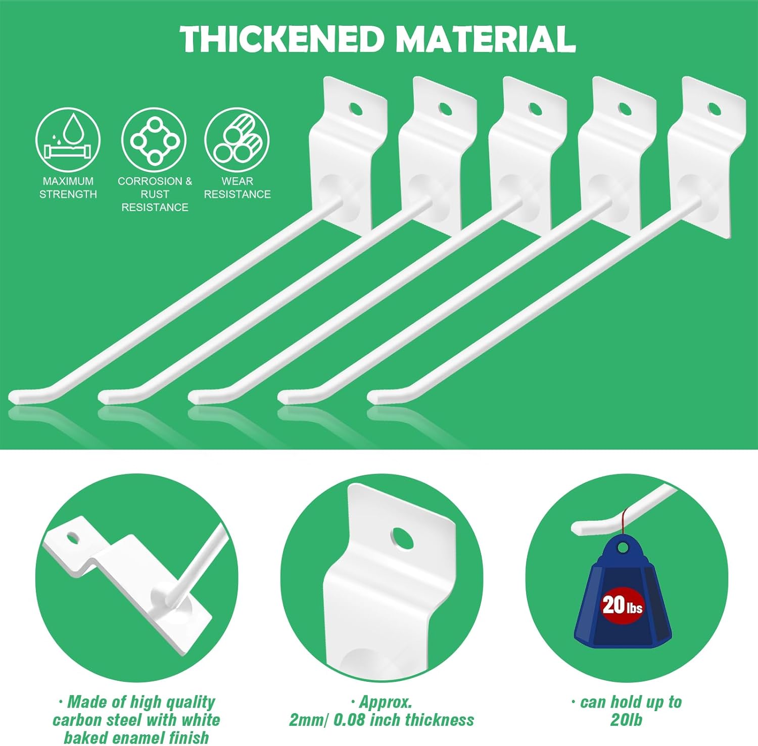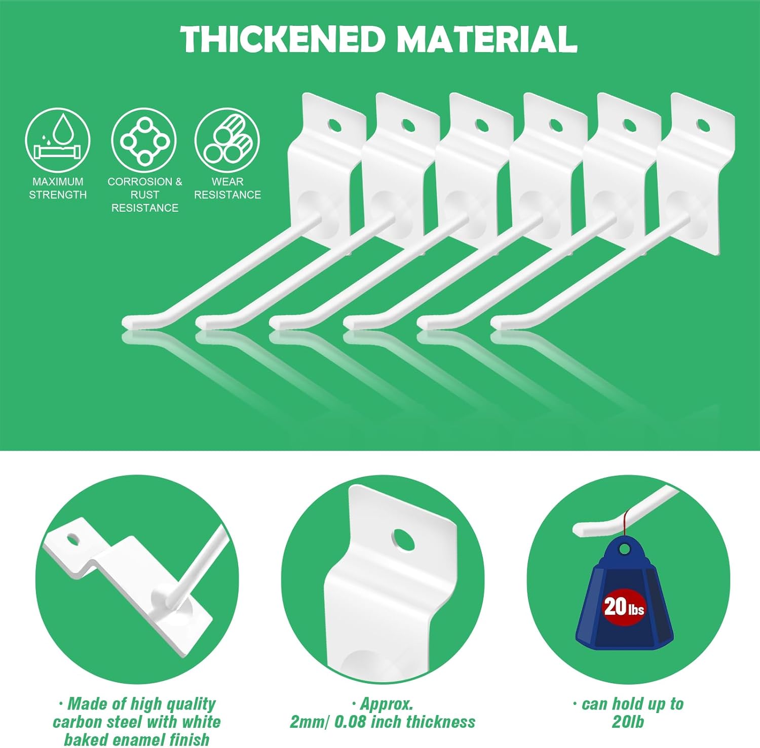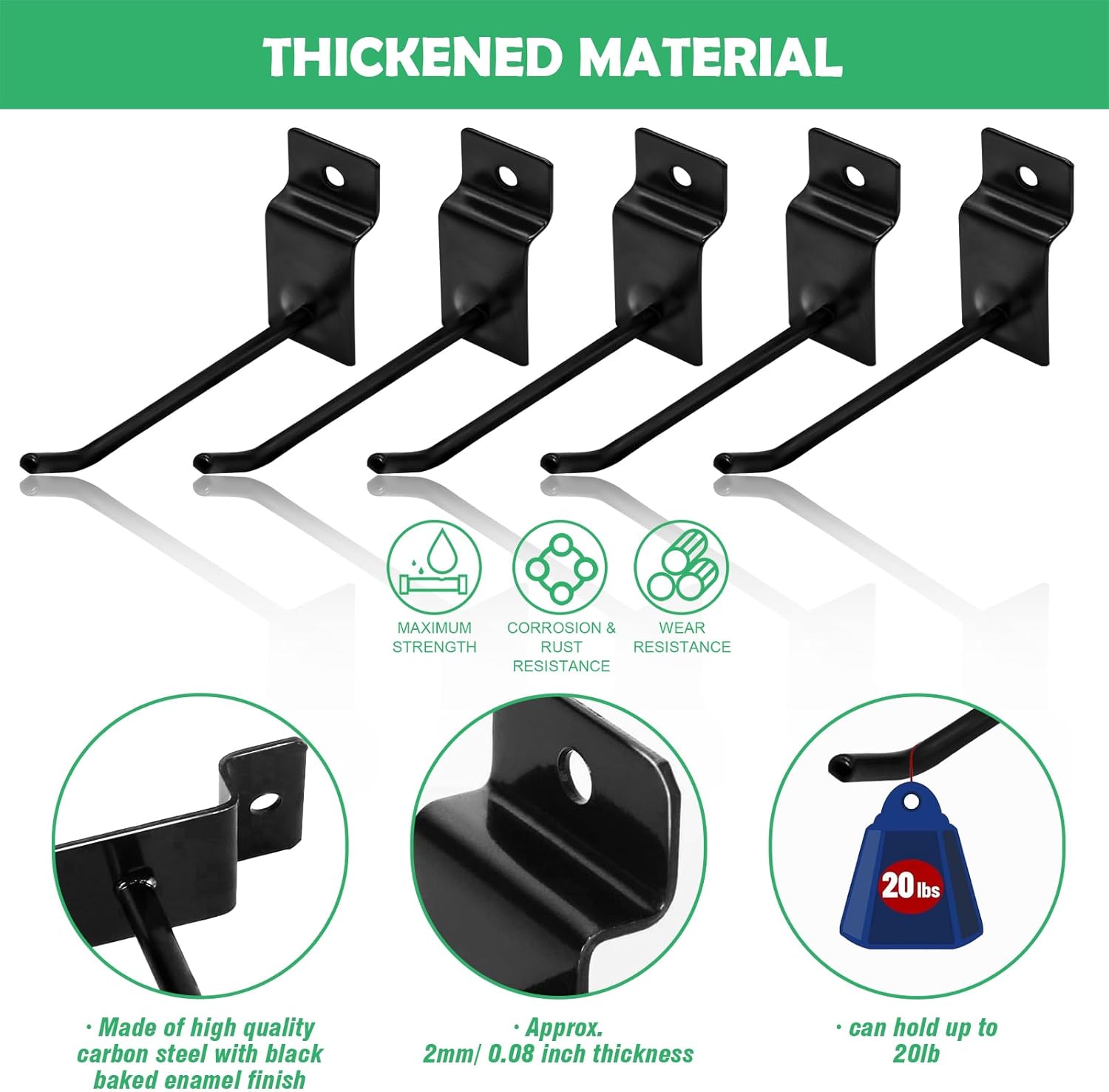 • [Heavy Duty Material] The grid panel hooks are made of premium stainless steel with rust-resistant and corrosion-resistant black oxidation finish for durability.The gridwall hooks adopts a thickened plate head part to make the hook stronger and enhances the bearing capacity of the hook, which are not easy to wear or deform after long time usage, serving you for a long time.