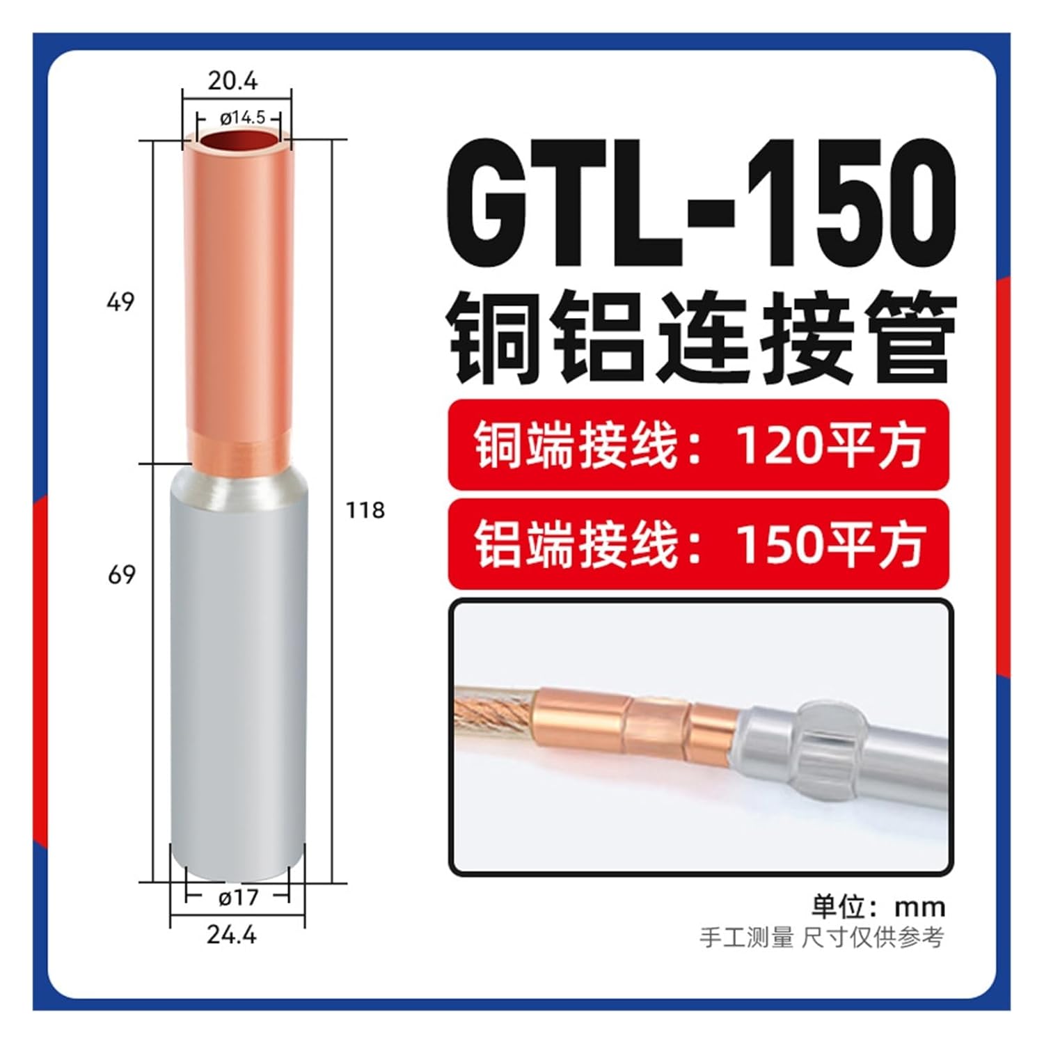 Ground Circuit Terminal BlocksSeries: GTL copper-aluminum connecting pipe 10-630 squareModel: GTL copper-aluminum connecting pipe 10 squareModel: GTL copper-aluminum connecting pipe 16 squareModel: GTL copper-aluminum connecting pipe 25 squareModel: GTL copper-aluminum connecting pipe 35 squareModel: GTL copper-aluminum connecting pipe 50 square metersModel: GTL copper-aluminum connecting pipe 70 square metersModel: GTL copper-aluminum connecting pipe 95 squareModel: GTL copper-aluminum connecting pipe 120 squareModel: GTL copper-aluminum connecting pipe 150 squareModel: GTL copper-aluminum connecting pipe 185 squareModel: GTL copper-aluminum connecting pipe 240 square metersModel: GTL copper-aluminum connecting pipe 300 square metersModel: GTL copper-aluminum connecting pipe 400 square metersModel: GGTL copper-aluminum connecting pipe 500 square meters