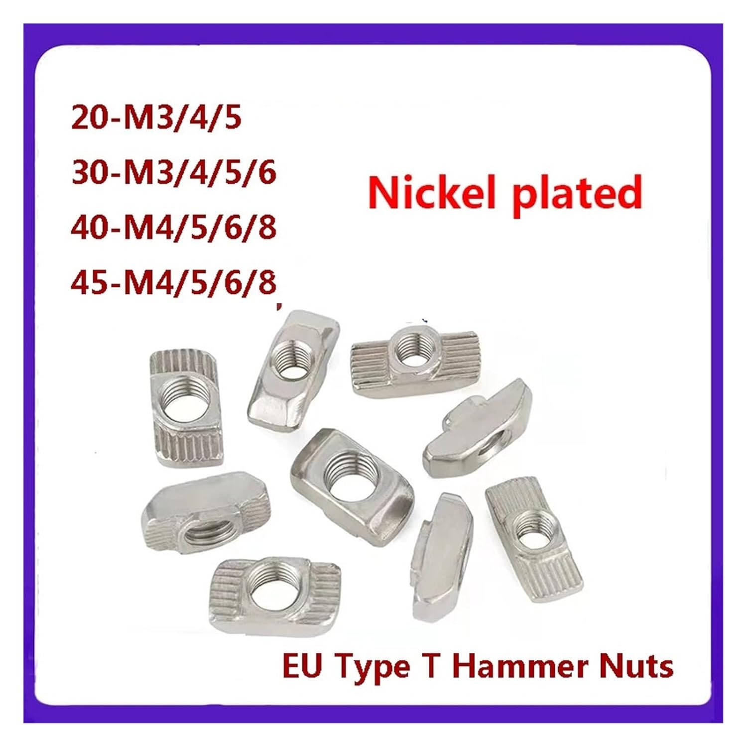 Sheets & PlatesProduct name: T nutMaterial: Nickel-plated carbon steelThread diameter: M3/M4/M5/M6/M8Package Included:5/10/20/50/100 x T Nut