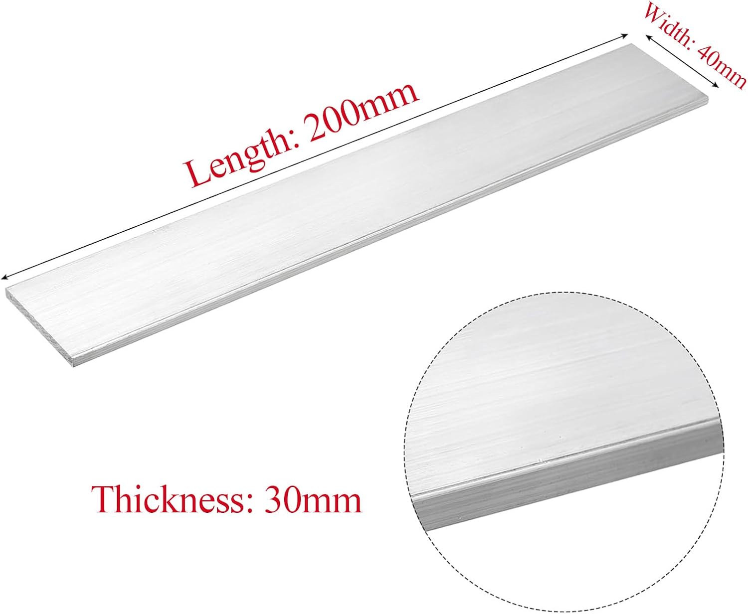 Features: - Aluminum flat bars are lightweight, easy to carry and process. Not only do they make projects easier to handle, but they also help reduce the overall weight burden.- These aluminum flat bars are easy to cut, weld and bend, allowing you to easily customize the shape and size to your specific needs.- Great for custom fabrication project such as DIY: Architectural sections, frames, lightings, railling, ladders, furniture, fences, flooring.Specification:- Material: 6061 Aluminum- Color: Silver- Size: 30×40×200mm/30×50×200mm/30×60×200mmProduct packaging: 1 Pieces x Aluminium Flat BarWarm Tip:- Please allow measurement error +/- 0.2 inches due to manual measurement.- The light of photography and different screens may make the color of the project in the picture slightly different from the real project.
