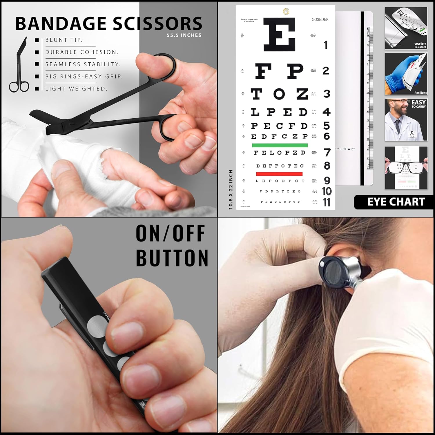 Set of Multi Purpose Diagnostic kit for Neurological, EMT and Eye EXAM, Reflex Percussion Taylor Hammer + Penlight + Tuning Fork C 128 C 512 + Bandage Scissors 5.5" Accurate Measurements and Effective Cutting: Comes with a retractable body measuring tape that is both flexible and durable. Also includes 5.5" stainless steel Lister Bandage Scissors designed to cut through fabric and bandages safely.