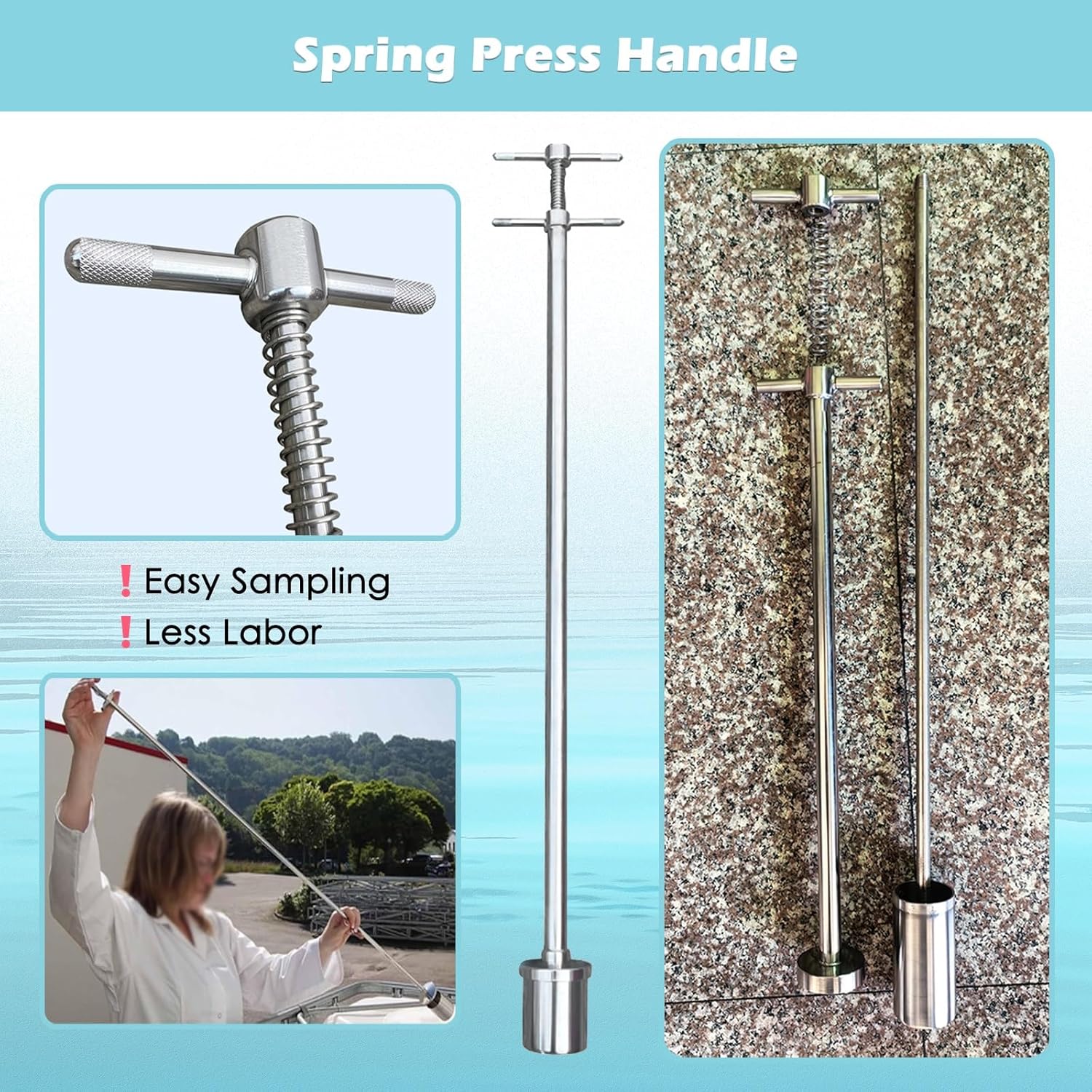 Are you finding it challenging to collect water quality samples? Do you have sampling points that are located too far offshore? Our Water Sampler is designed to make your sampling process quick and efficient while being easy to carry. This essential tool is perfect for anyone needing to monitor water quality in various environments, including rivers, lakes, industrial plants, and outfalls. With our Water Sampling Dipper, you can effortlessly access water at different depths, ensuring you get accurate samples every time. **Product Specifications:** - **Material:** Durable 304 Stainless Steel - **Capacity Options:** 100ml, 200ml, 500ml, 800ml, 1000ml - **Length Choices:** 1.6 ft (50 cm), 3.3 ft (100 cm), 4.9 ft (150 cm) **Key Features:** - **Convenient Sampling:** Simply press to collect samples, making your job easier. - **Versatile Depth Access:** Reach water at various depths without hassle. - **High Temperature and Rust Resistance:** Crafted from 304 stainless steel, it is sturdy and designed to withstand harsh conditions. - **Lightweight and Portable:** Easy to carry and store, perfect for fieldwork. - **User-Friendly Assembly:** Quick to assemble and disassemble for hassle-free use. - **Easy to Clean:** Maintain hygiene with minimal effort. Our Water Sampler meets the diverse needs of environmental monitoring professionals, ensuring you can capture reliable samples no matter where you are. **Note:** Minor errors of up to 1 cm may occur due to different batches and manual measurements. There may also be slight color variations due to lighting differences. Please refer to the actual product for accurate representation. Enhance your water quality sampling experience with our Water Sampler, and contribute to better environmental health monitoring today!