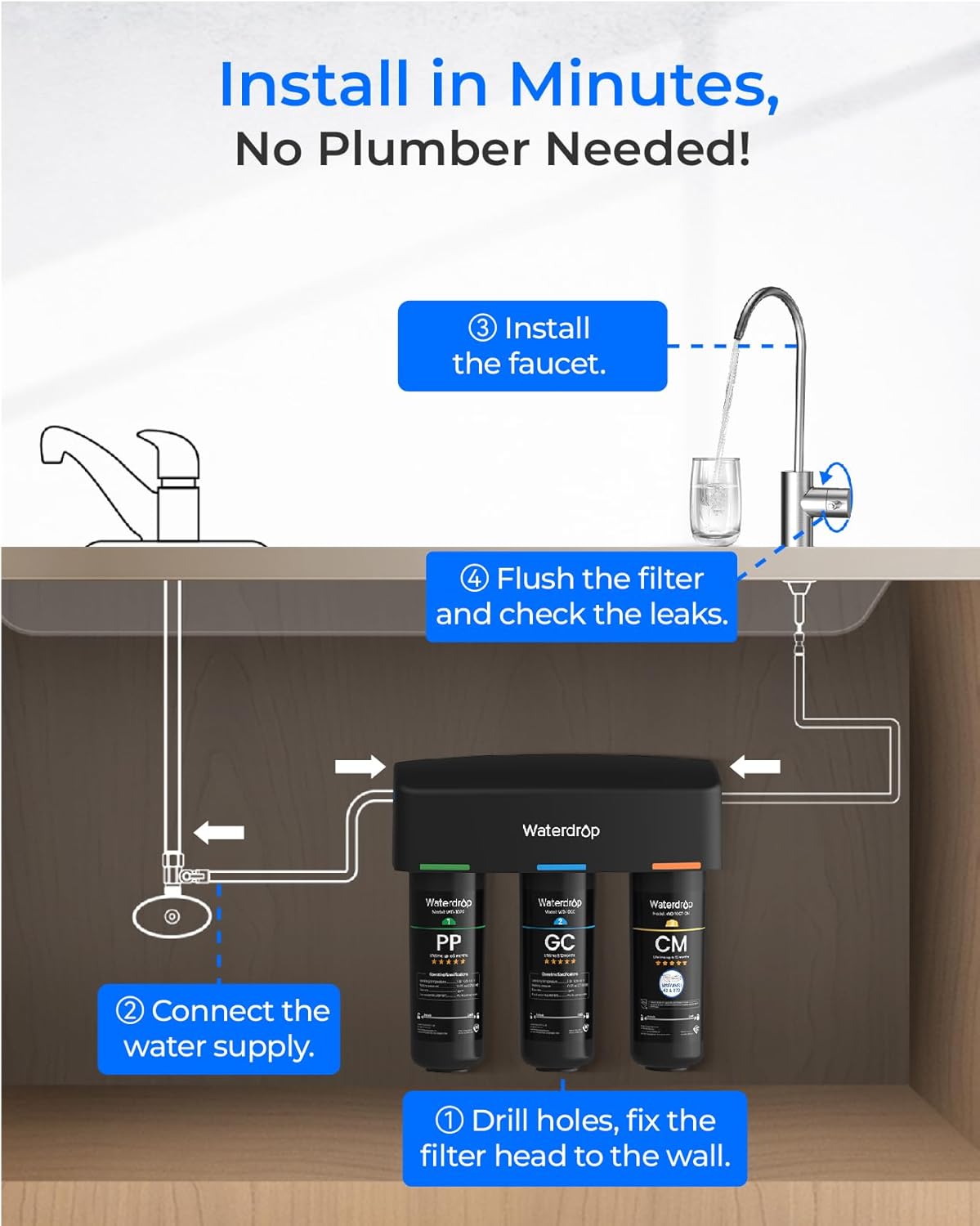 | Included Components | Undersink Water Filter ·SS304 faucet ·1/4" PE tubing ·3/8"–1/2" Convertor |