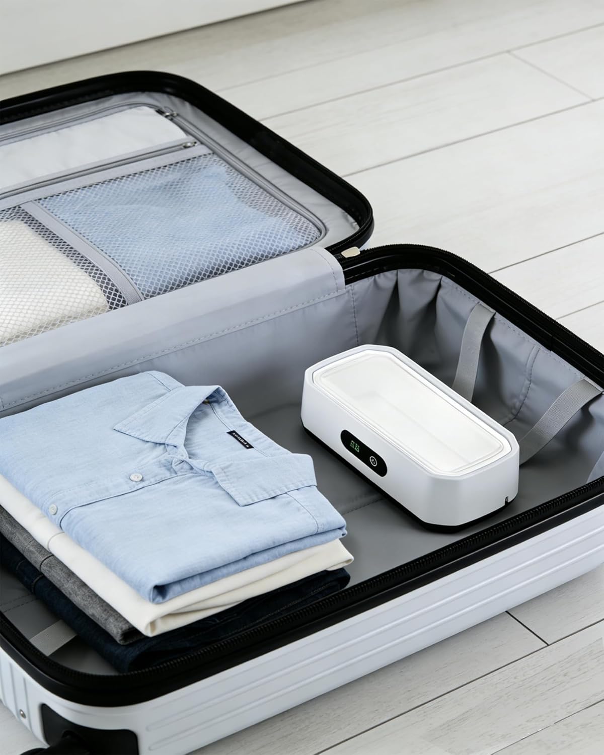 Our jewelry cleaner uses high-frequency sound waves at 50,000 Hz to create multidimensional water molecules that penetrate deep into crevices, achieving 360°deep cleaning and removing dirt in just a few minutes.(Using a cleaning solution yields even better results.)