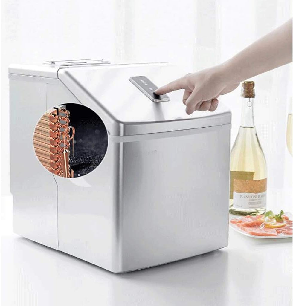Product parameters: Ice Storage Capacity: 1.3kg Single ice outlet: 24 pieces Rated Power: 105W Product specifications: 287 x 375 x 357 mm. Ice cube shape: square ice Ice cube size: 22 x 22 x 22 mm. Shell Material: ABS Operating voltage: 220-240V/50Hz Water inlet method: manual water inlet Note: The size of the product is measured manually, please refer to the actual product.