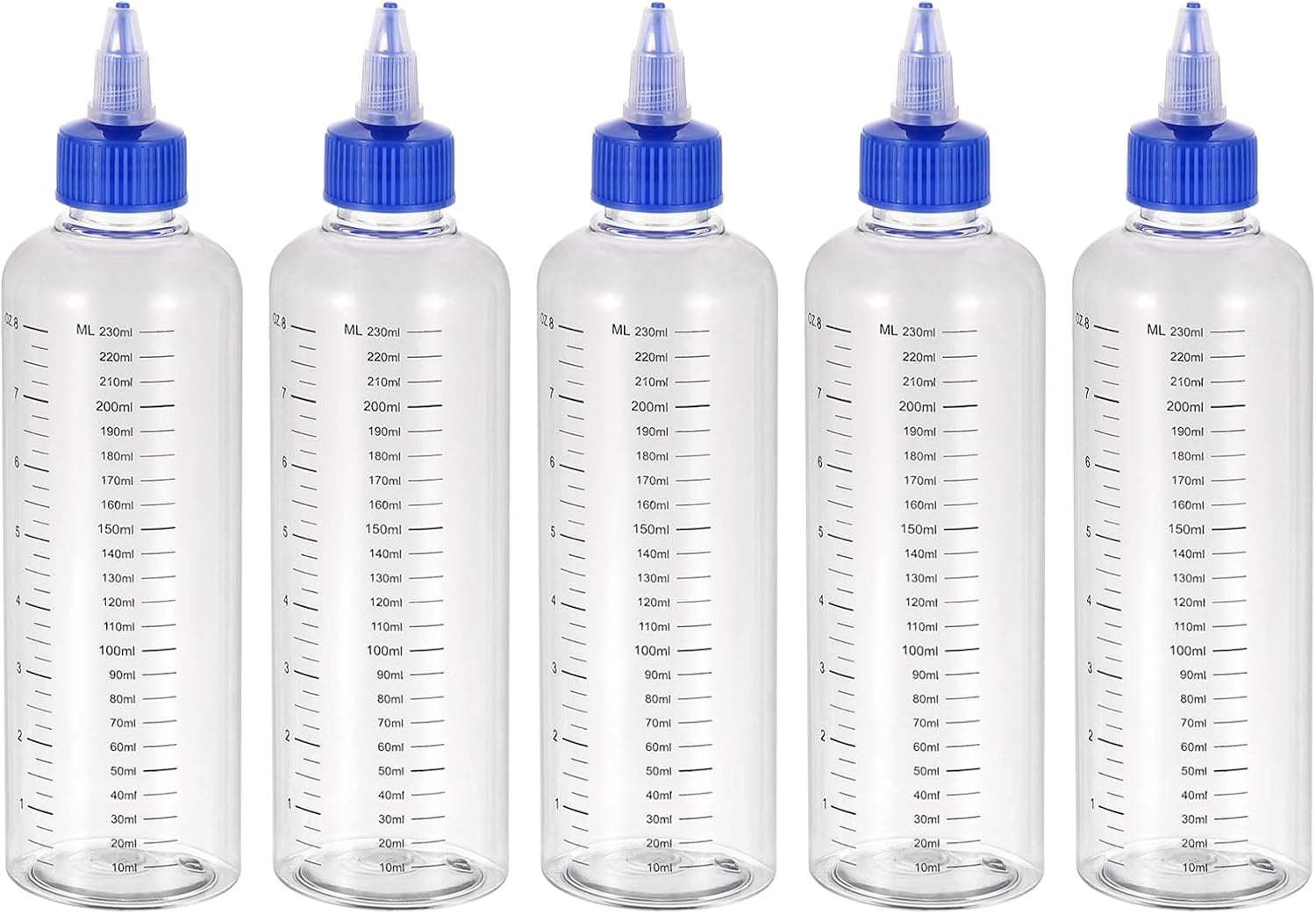 The dispensing bottle is widely used in the kitchen, home, and laboratory for dispensing or storage of liquid, oils, sauces, and dyes. They are suitable for cakes, cookie making, and crafts making.SpecificationCapacity:2 Ounce/60mlOverall Size(inch): 110 x 37.7mm/4.3 x 1.5inch(H*OD)Bottle Height: 79.6mm/3.1inchMouth Inner Diameter: 15mm/0.6inchMouth Outside Diameter: 17.5mm/0.7inchColor: Transparent(Bottle Body); Blue(Bottle Cap)Material: PlasticPacking List: 5Pcs x Dispensing BottleAdvantage1. The dispensing bottles are made of durable polyethylene material, which is not easily broken and deformed and can be used for a long time.2. Transparent bottle color allows you to distinguish the liquid in the bottle. Clear graduation lines allow you to read the volume of your liquid.3. Plastic screw caps tight seal prevents leakage of your liquid. Squeeze-out tips make it convenient to control the liquid flow.InstructionTwist off the cap, pour the liquid into the bottle, and close the cap.Note: Please check the size before purchasing.Please avoid light when using to extend the use time of liquid and bottle.