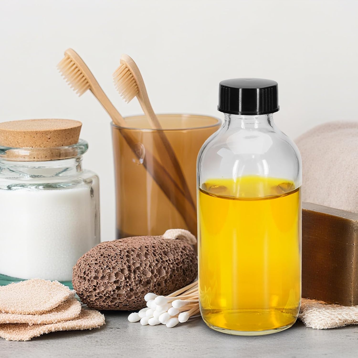 Premium Quality: Boston bottle made of high quality glass. It also has excellent stability. glass bottles are protected from light and can effectively resist sunlight, extending the shelf life of light-sensitive products. Clear Boston round glass bottle perfect for homemade extract, essential oils and more.