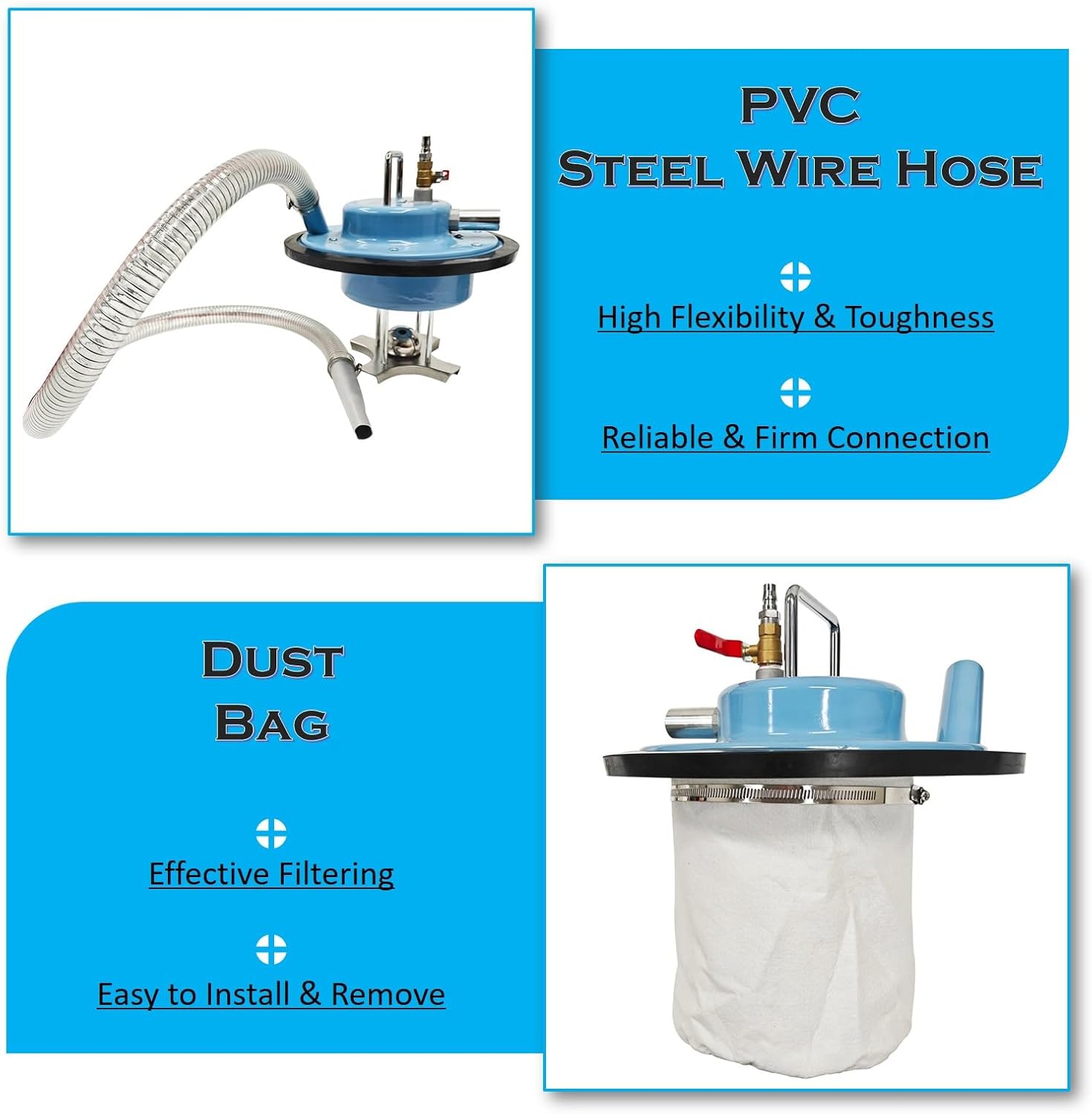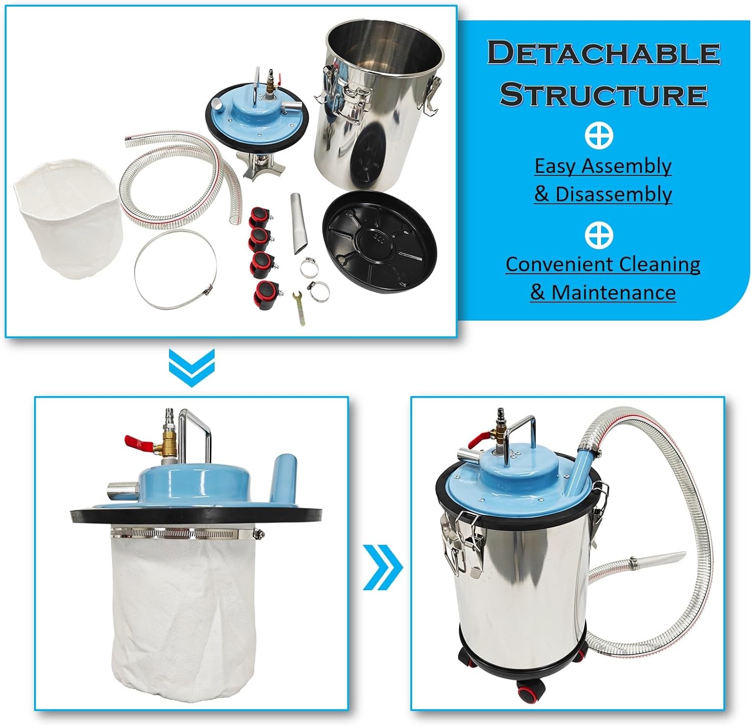 ▼Parameters:Capacity: 30LMain material: 201 stainless steelHose: 32mm*2mm*1.5mAir compressor horsepower: 4-6KG/CM2 5HP (minimum)Liquid viscosity(Max.): 3000CPAir pressure: 0.6-0.8 MpaDisplacement: 14CFM or 400L/minNegative pressure capacity: ≥-0.27 MpaPower: 3700W→Note: Please bring your own air compressor.▼Packing list:Body *1Hose *1Vacuum head *1Dust bag *1Removable plate *1Item Number: 220647