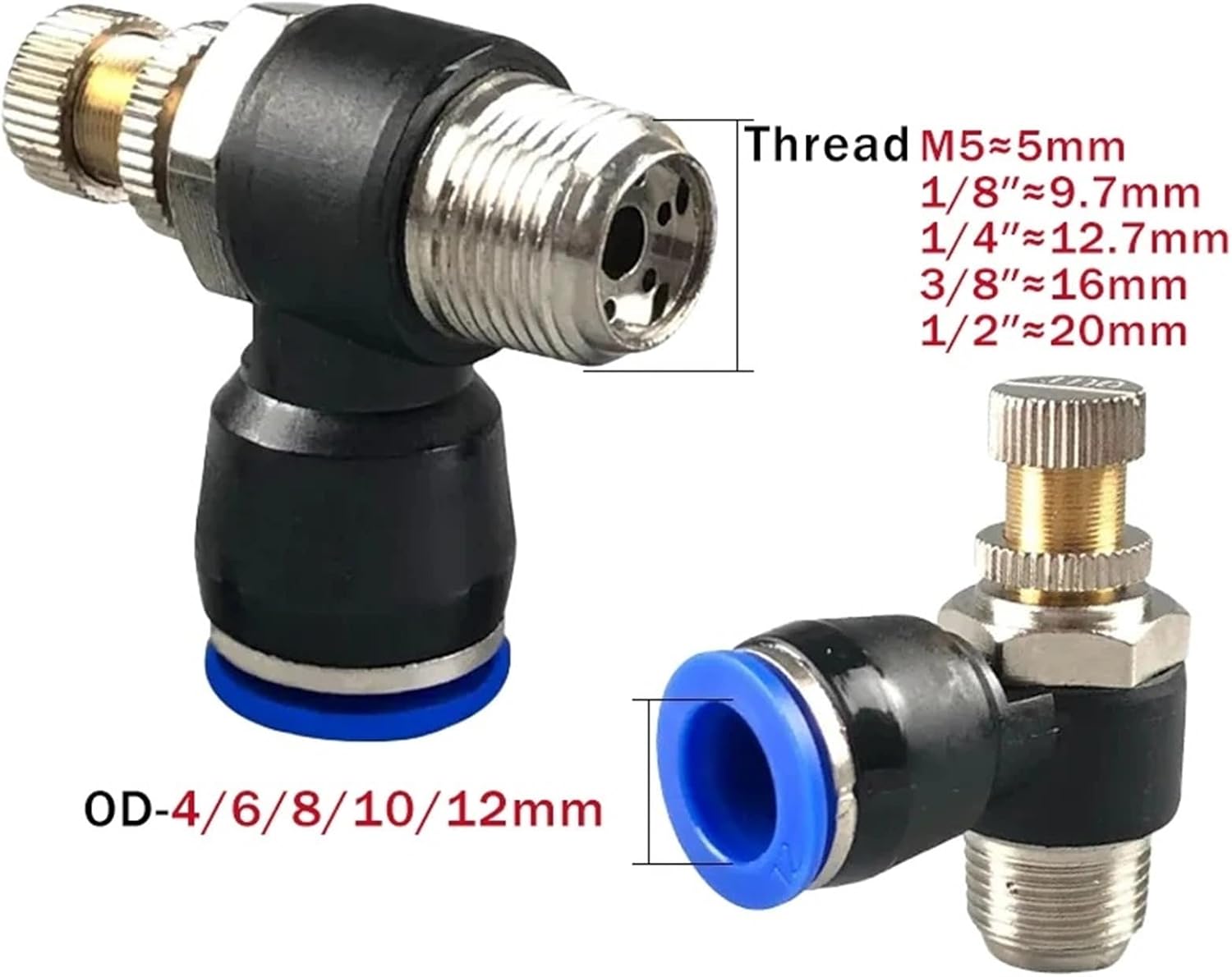 Upgrade your pneumatic system with our 5Pcs Pneumatic Air Connector Elbow Fittings. This set includes connectors in various sizes (4mm, 6mm, 8mm, 10mm, and 12mm) to accommodate different air hose requirements. Each fitting features standard male threads of 1/8", 1/4", 3/8", and 1/2", ensuring compatibility with a wide range of pneumatic tools. Designed for durability, these connectors provide a secure, leak-proof connection, making them ideal for air hose systems. Their compact and lightweight design allows for easy installation and transport, making them a must-have for any workshop or industrial setting.