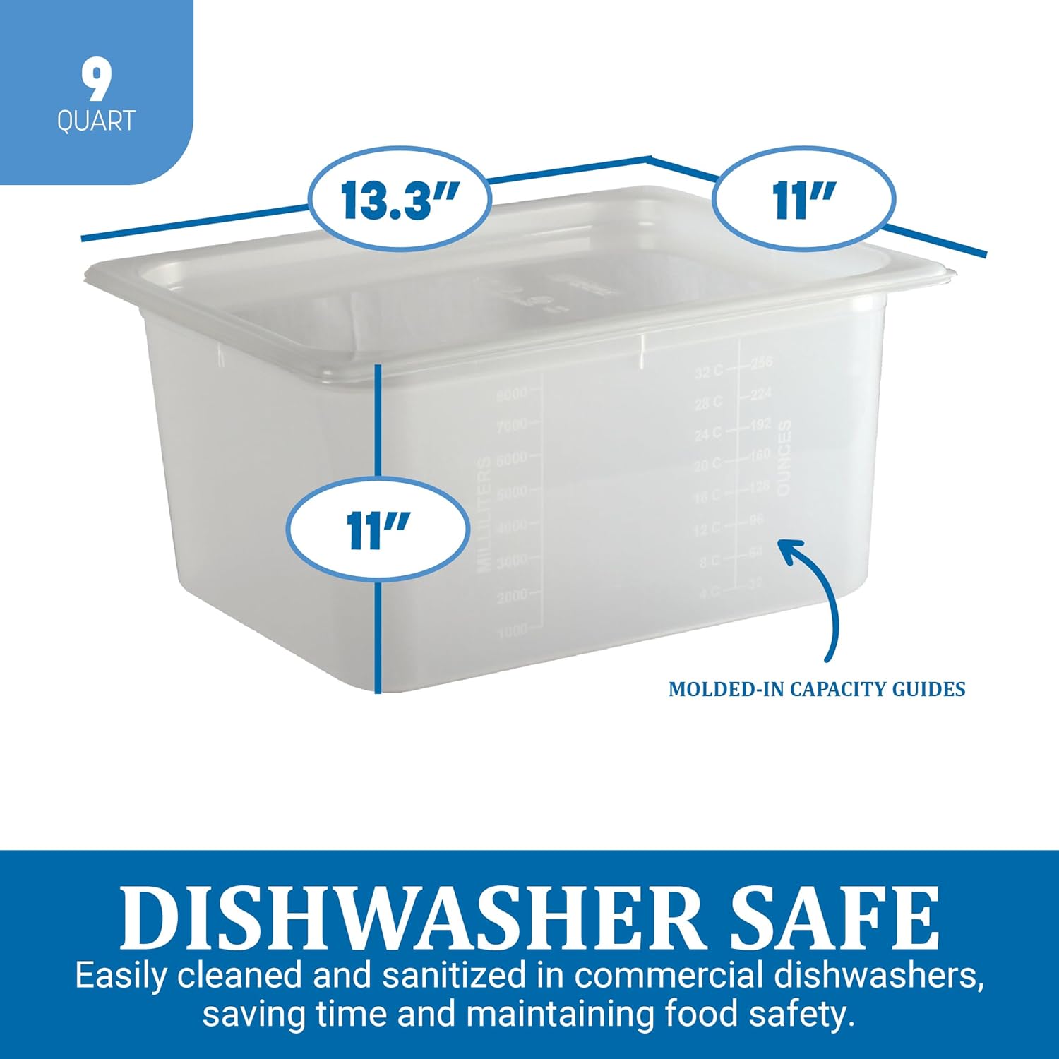 The San Jamar Modpans 1/2 Size Food Pan and Lid is your ultimate solution for versatile and efficient food storage in kitchens and restaurants! Crafted with durability and functionality in mind, this food pan set revolutionizes the way you measure, store, seal, and microwave food, offering a comprehensive solution for various culinary needs. Designed for convenience and reliability, the included lid snaps securely onto the pan, ensuring freshness and minimizing the risk of spills or leaks during storage or transport. With efficient stacking capabilities, you can maximize storage space in your kitchen or restaurant, keeping your ingredients organized and easily accessible. Made from durable plastic, these food pans are stain, odor, and crack-resistant, guaranteeing long-lasting performance even in busy kitchen environments. Their transparent design allows for easy identification of ingredients, while dishwasher-safe materials ensure hassle-free cleaning after use. Whether you're portioning ingredients for recipes or storing leftovers, these food pans are equipped with molded-in capacity guides for quick and efficient portioning, streamlining food preparation processes and promoting consistency in your culinary creations.