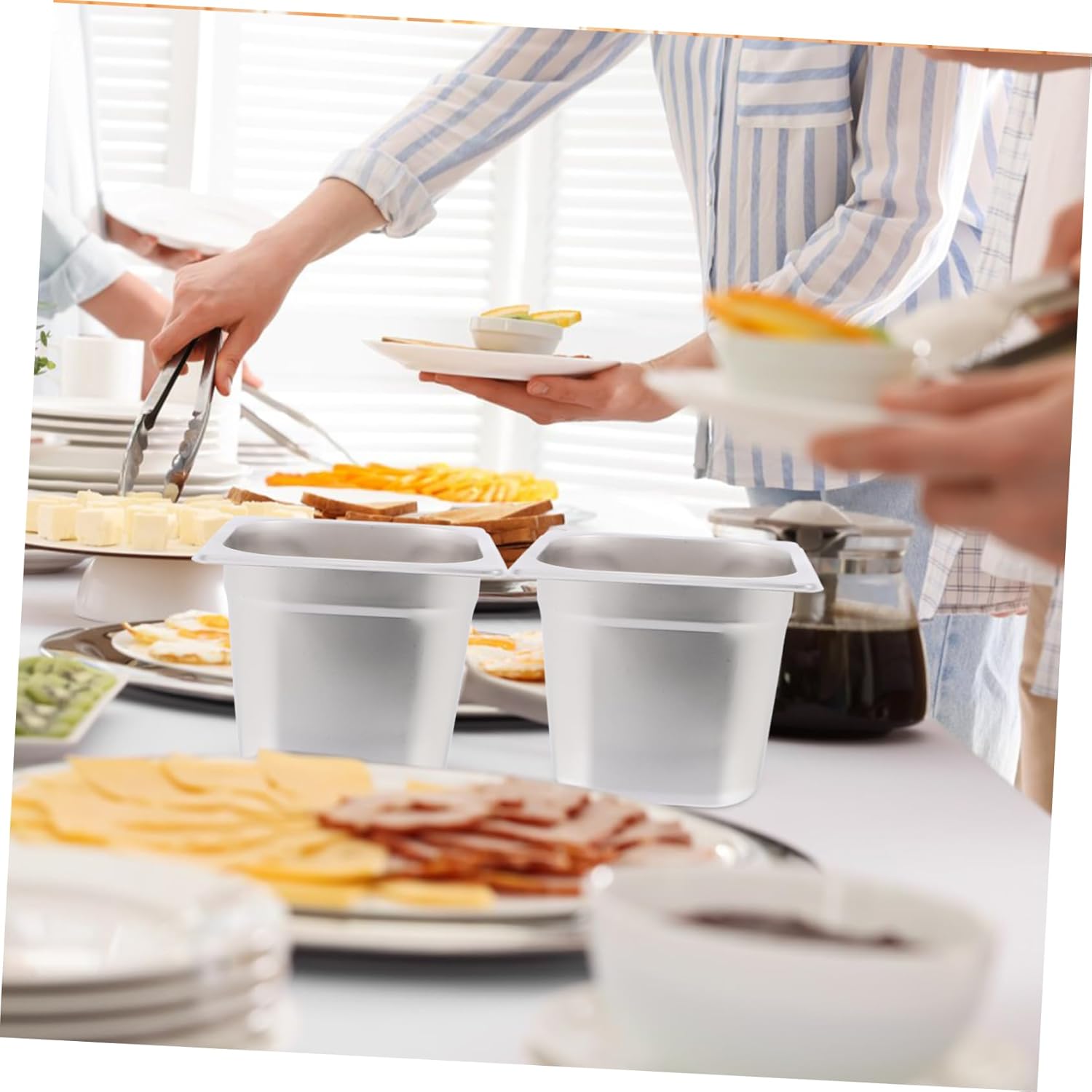 Package List 4 Table Pan Characteristics -Ideal: designed for buffet use, these pans facilitate easy self service, allowing guests to help themselves and reducing the workload chafing pans for buffet -Sturdy and reliable: made from stainless steel, these steam table pans are built to endure heavy use, making them a reliable choice for any food service operation restaurant containers -Professional look: the sleek and modern design of these pans adds a professional touch to your buffet setup, enhancing the overall dining experience for your guests hotel pans -Color:Silver stainless steel dish pan -Size:17.50X16.00X15.00cm/6.88X6.29X5.89in stainless steel oven pan -Material:Stainless steel stainless steel tray -Effortless maintenance: the nonporous surface of stainless steel ensures that these pans are easy to clean, helping to maintain a high standard of cleanliness in your kitchen chafing dish -Spacious design: the depth allows for generous portions, accommodating a variety of dishes and minimizing the need for constant replenishment food panGoods Descriptionbuffet pans Their 6-inch depth provides sufficient space for a variety of foods, from appetizers to main courses.food pan Ideal for restaurant buffets and catering events, the 1/6 size stainless steel steam table pans offer versatility and convenience.food warmers These pans are designed to fit seamlessly into steam tables, ensuring that your dishes are presented beautifully and kept at the right temperature