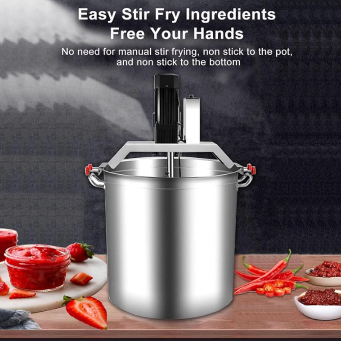 This automatic food mixer is engineered for efficiency and durability, making it the perfect addition to commercial environments such as hotels, restaurants, and food processing facilities. Designed with a stable scraper, it guarantees smooth mixing of ingredients without any wobbling, ensuring consistent results every time. The 3-layer composite stainless steel construction provides exceptional strength and load-bearing capacity, making it ideal for high-demand settings. Equipped with a removable fixed knob, the mixer stabilizes the blade to prevent any unwanted movement, and its user-friendly design allows for quick disassembly and reassembly, enhancing overall longevity. The intuitive control interface supports automatic cooking, significantly reducing the need for manual oversight and streamlining the cooking process. With a robust handle capable of supporting up to 300KG, this mixer promises reliability and safety during operation. Whether you're preparing large batches of dough, sauces, or other culinary creations, this 40L/80L automatic food mixer is versatile enough to meet your needs. Its compatibility with various heating sources, including gas stoves and induction cookers, adds to its practicality. **Specifications:** - Name: 40L/80L Automatic Food Mixer - Core Component: Motor - Material: Stainless Steel - Type: Cooking Equipment - Heating Sources: Gas Stove, Induction Cooker, Electric Ceramic Stove, etc. - Voltage: 110V/220V/230V - Outer Diameter: 42cm/52cm - Inner Diameter: 40cm/50cm - Inner Depth: 40cm/50cm - Bottom Diameter: 39cm/49cm - Capacity: 40L/80L - Water Capacity: 40kg/80kg - Oil Capacity: 25kg/50kg - Applicable Industries: Hotels, Restaurants, Food Processing, Farms Elevate your culinary operations with this reliable and efficient automatic food mixer, designed to enhance productivity while ensuring quality results.