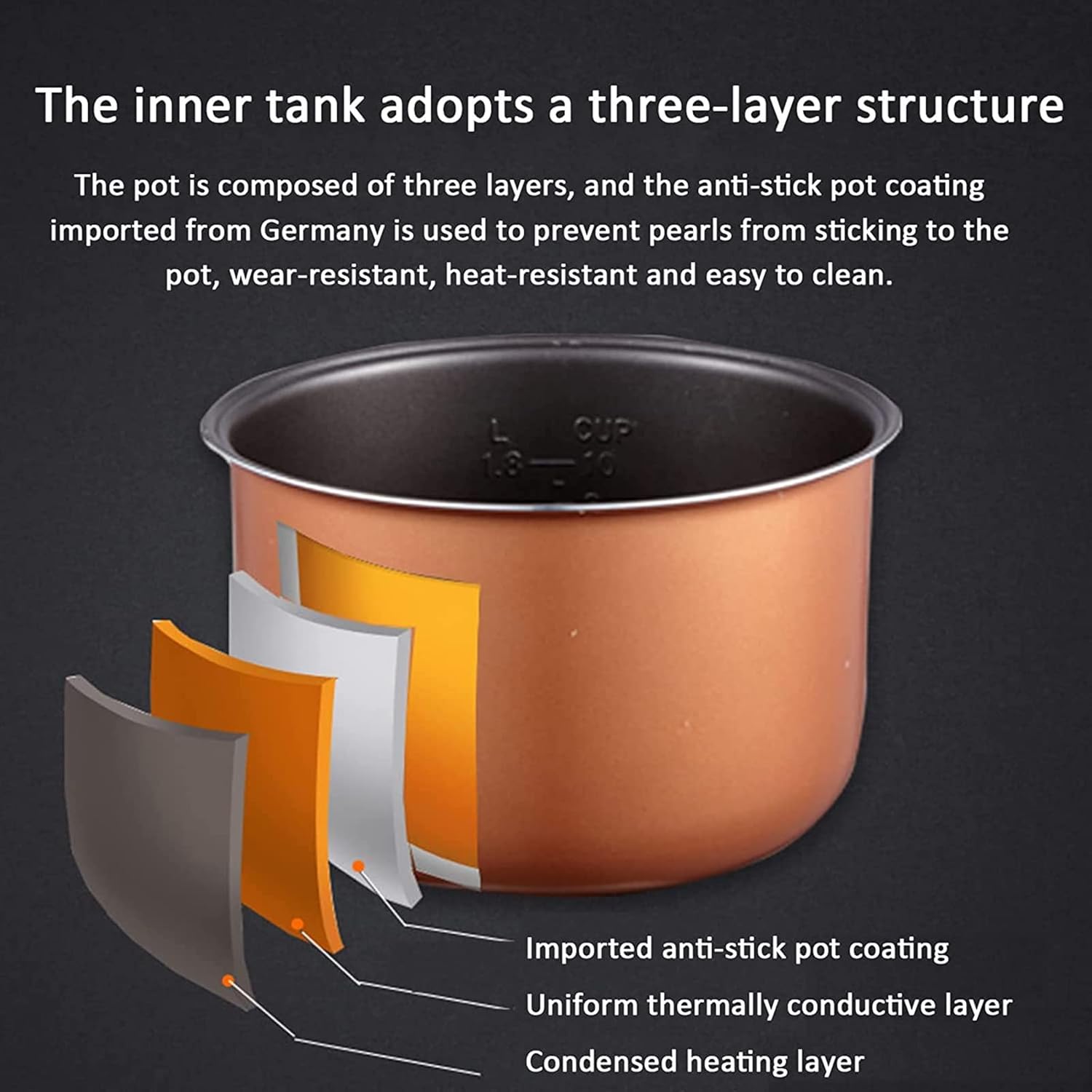 Product features:★The pan consists of three layers with food grade non-stick coating. Easy to clean. The heat transfer is fast, the heat conduction layer is uniform, and the heating layer is formed. fast heat transfer★It can be used in bubble tea shops, coffee shops, restaurants, supermarkets, fast food stalls, snack bars, etc.parameter:Size: 30*39*27cmPower: 900WCapacity: 5LWeight: 4kgNote:★Product dimensions are all measured manually, please allow slight errors, please refer to the actual product for detailspacking list:1*pearl cooking pot