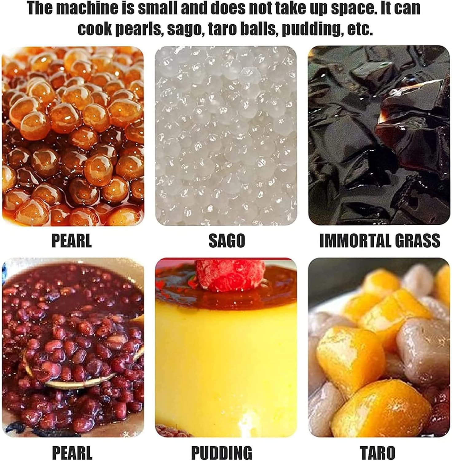 Commercial Automatic 6L Pearl Pot Milk Tea Cooker Boba Cooker Tapioca Boba Pearl Rice PotStainless steel housing material, food grade non-stick coating.Intelligent touch screen operation panel, 1-button start, fully automatic cookingThe pot consists of three layers,food grade non-stick coating.And easy cleaning. Fast heat transfer, uniform heat conduction layer, shaped heating layer. Fast heat transferWidely be used to boil pearls, red beans, puddings, brown sugar,taro,simi etc. Can be used in milktea shop, home kitchens, snack food shops, restaurant, hotels, ice cream shopes, bakeries, etc.Package include 1 machine,1 liner, 1 spoon, 1 wireHow to make pearls and tapioca flour:①Add water and wait for the water to boil;②Add pearl or tapioca flour and stir for 2-3 minutes;③Wait for 25 minutes, no need to stir during cooking;④ Stew the pearls for 20-25 minutes. Boiled pearls and stewed pearls do not require manual care, which saves time. Then you can get a pot of 1kg boiled pearlsProduct Parameters:Material: Aluminium Alloy & ABS PlasticsColor: BlackPower: 900WCapacity: 5L/6LSize: 30*40*27cmNet weight: 3.5kgReminder: To protect the coating, Do Not Use steel wire balls or hard objects to scrub the inner tank.