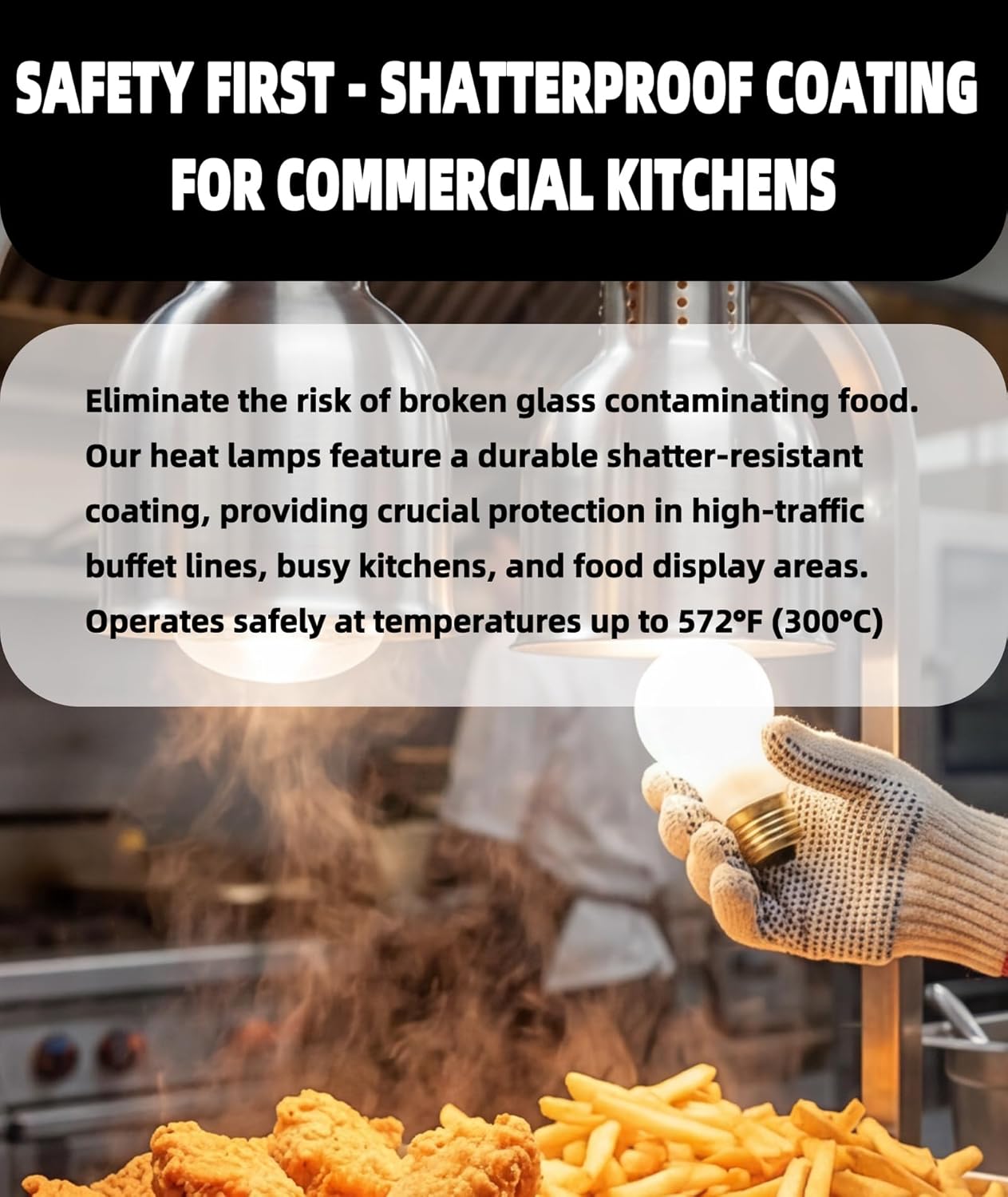 | Model Name | Food Warming Heat Lamp Bulb, 40W Shatterproof Replacement Compatible with Hatco 02.30.265 – Safety-Coated Shatter-Resistant Heat Lamp Light Bulb |
