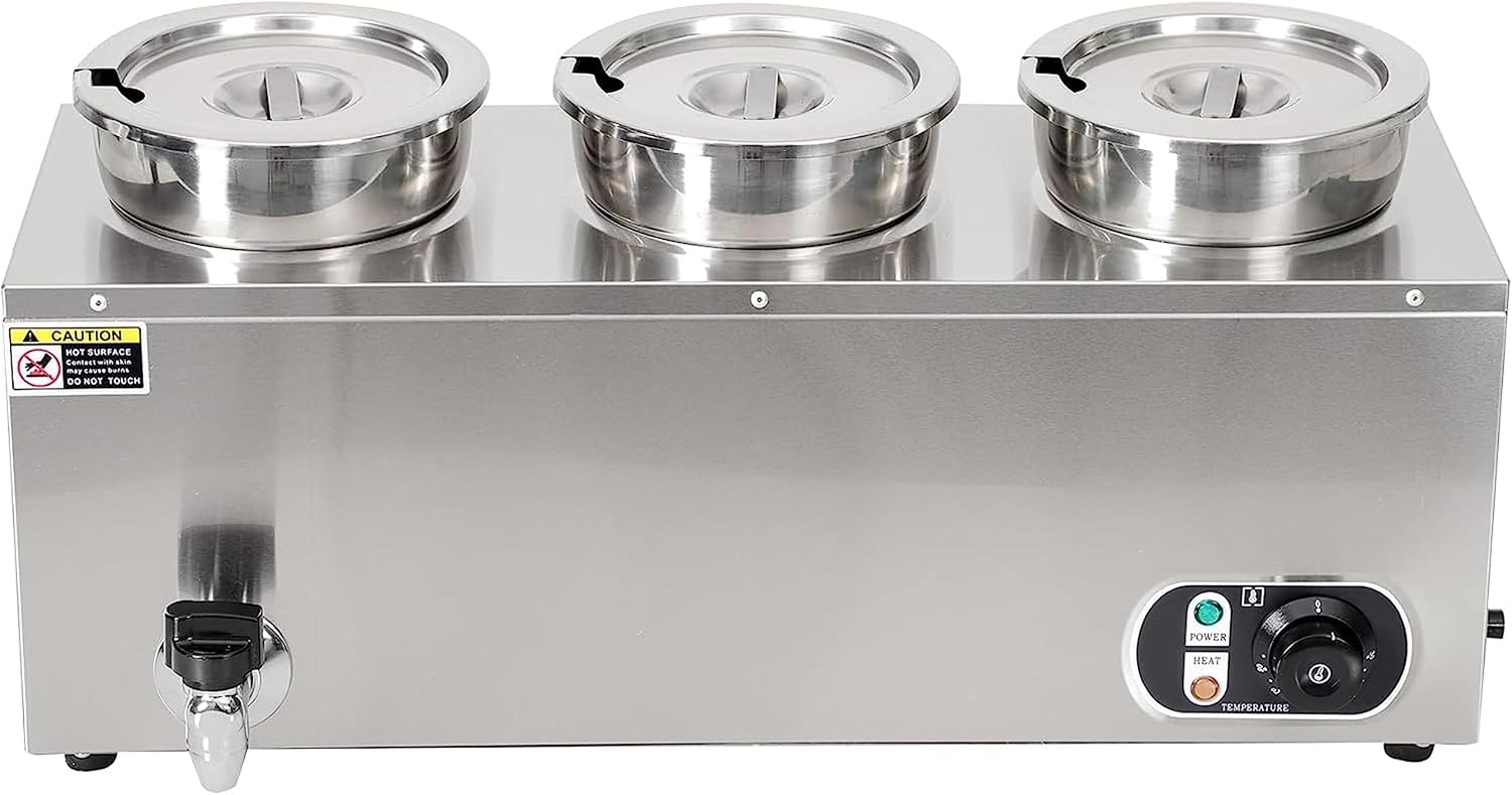 Specifications:Body material: food grade stainless steelpower:Single head (7L): 300WDouble head (14L): 600WThree heads (21L): 1000WFour heads (28L): 1400WSingle barrel capacity: 7L/7.4QtTemperature range: 30-85℃/86-185℉ Packing: carton + bubble wrapThe package contains:soup warmerspooncolanderEnglish manual