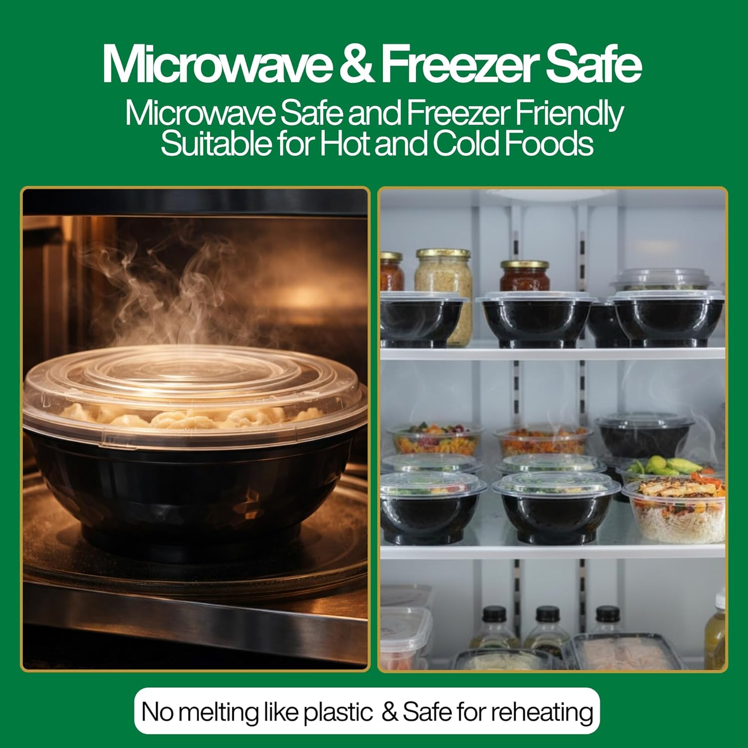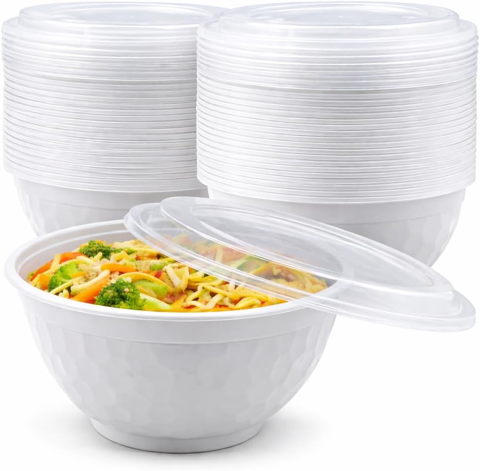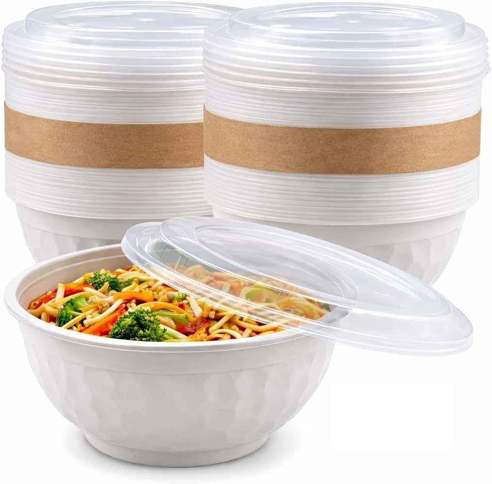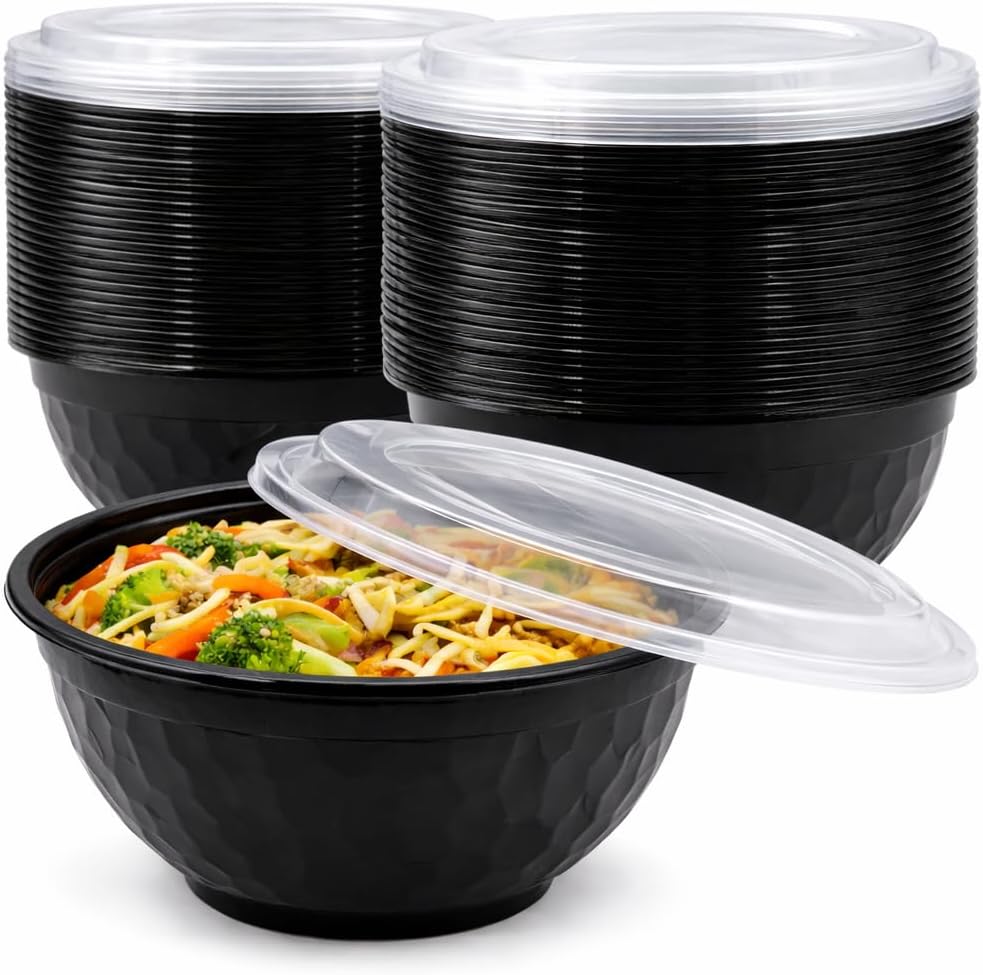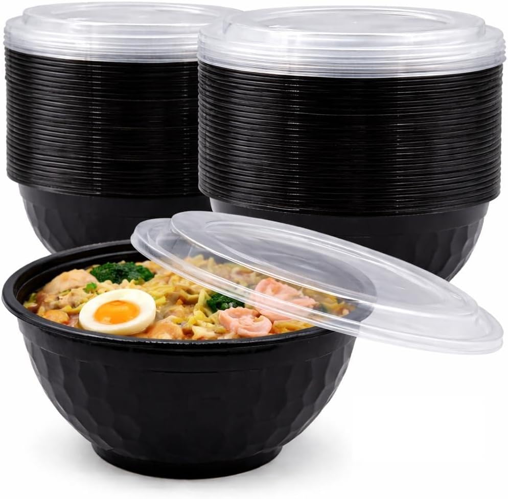 ProTakeOut microwaveable noodle bowls with lids are designed for restaurants, takeout service, catering, and meal prep. These durable disposable bowls are ideal for ramen, noodles, soup, rice, salads, and hot or cold meals. Made from strong, food-safe materials, the containers are leak-resistant and help keep food secure during transport or storage. The bowls are microwave and freezer safe, making them convenient for reheating and food preparation. Tight-fitting lids help prevent spills while maintaining freshness. Perfect for restaurants, food trucks, catering services, and home meal prep, these bowls provide a reliable solution for packaging and serving meals.