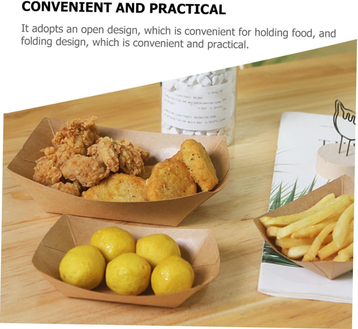 Package Include Paper Food Boxes Characteristics -Size: 20.00X15.00X4.50cm/7.86X5.89X1.77in -Product Info:Oil-proof meal box -Color: Khaki -Material: Paper -This is also essential to food stands, restaurants, diner, cafe, and snack bars fried snacks container. - paper food trays are just what you need to make your , serve everything to everyone, and clean up fast snack containers. -Perfect for holding , desserts, tacos, hot dogs, chips, , and fries french fry boxes. -It offers a great grease barrier, oil, and to accommodate both hot or cold food chicken snack container. -Can be used in snacks, frying food, ice cream or any other greasy food you want disposable french fries holder.Goods Informationfood packaging boxes Suitable for storage of french fries, snacks, cookies, beans, and other desserts.snack containers These are.fried food holder Sufficient quantities, in total, can meet your usage demands.fried snacks container Made of , durable and practical for use