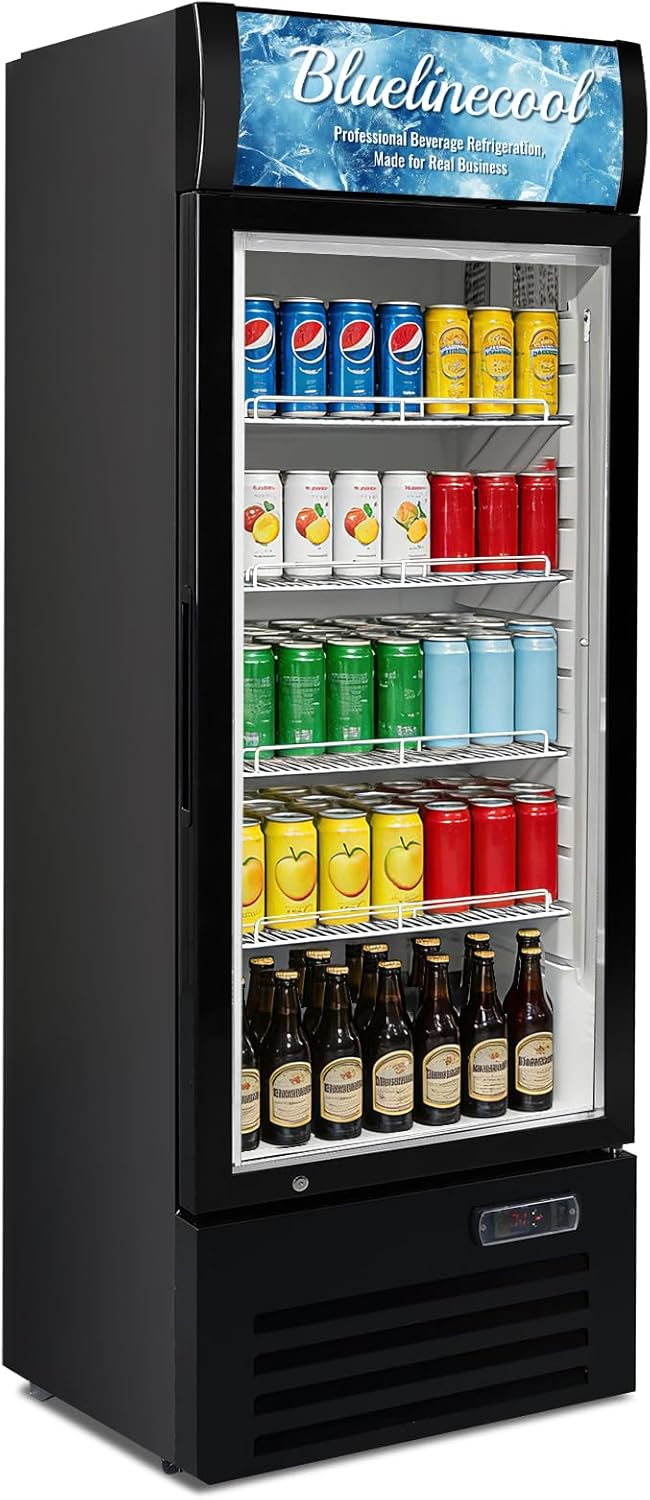 9 cu.ft Commercial Refrigerators with 1 Glass Door, Beverage Fridge with LED Light Display Upright Merchandiser, Drink Cooler with 3 Adjustable Shelves Black ETL Approved