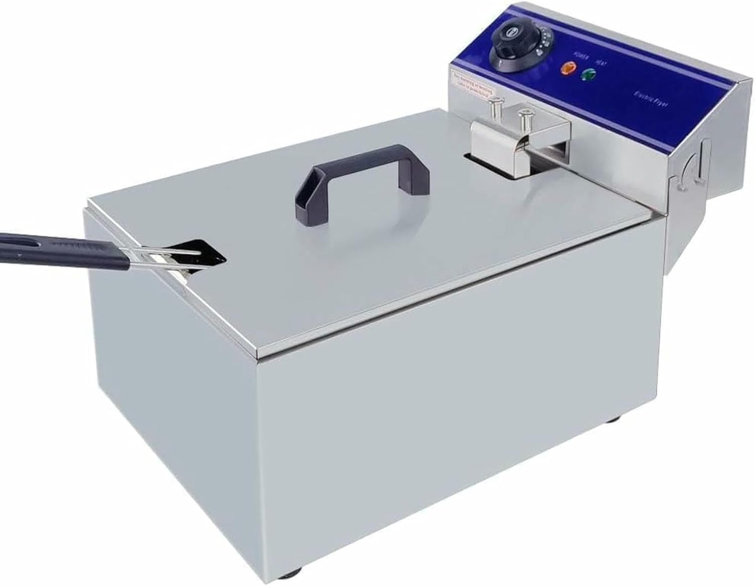 Electric Deep Fryer Commercial Stainless Steel Tank With Lid Easy Clean Home and Commercial Use Countertop Kitchen Fat Fryer Frying Machine for French Fries
