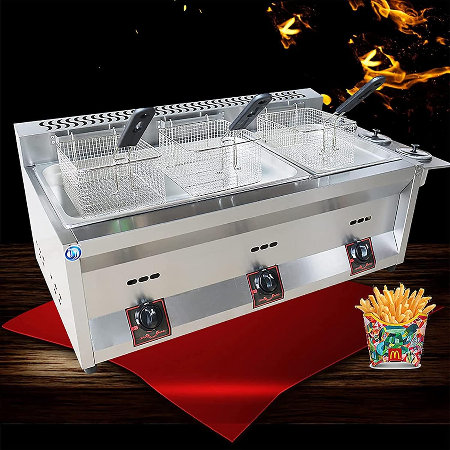 ▲Functions of the fryer 20L/30L large capacity design, can process many foods at the same time, very suitable for commercial use Very suitable for commercial use, such as restaurants, supermarkets, fast food restaurants, snack bars or home use; Suitable for all kinds of cooking, french fries, chicken, fish, onion rings, etc. Operation is simple, performance high and efficiency excellent. ▲Specification: Name: gas fryer Type: LPG + regulator Capacity: 20L, 30L Temperature control range: large, medium and small fire Size: 20L: 56*36*45CM 30L: 83*36*45CM inner pot size: 20L: 30*24*15CM*2 30L: 30*24*15CM*3 ▲Remarks: 1. This product can only use low pressure valves. 2. Because the product is measured manually, if there are any errors, please refer to the actual product received. 3. We are committed to providing quality services. If you have any questions, please contact us and we will reply to the email within 24 hours.