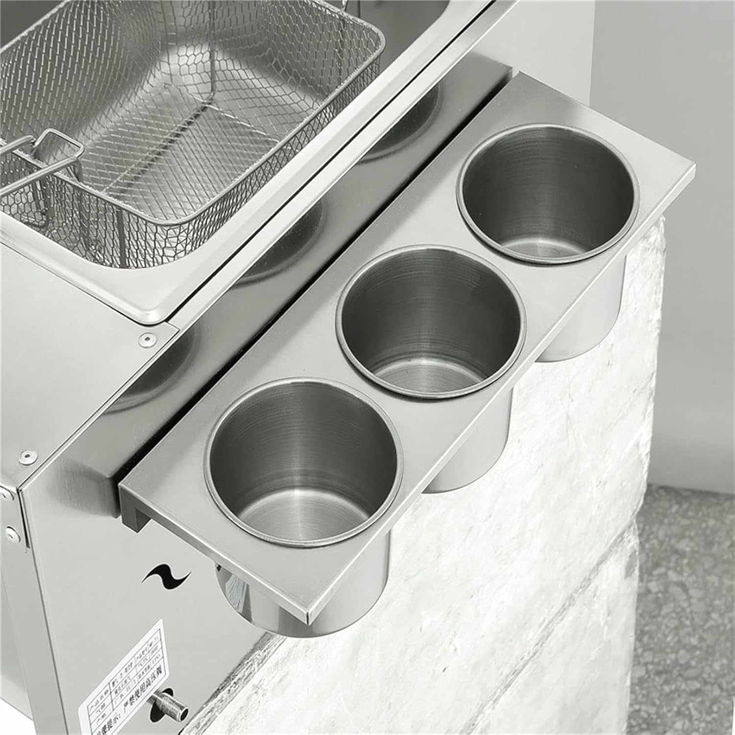 Description:Material: Stainless steelOptional capacity specifications: single bin; double binType: LPG + pressure reducing valve (low pressure valve to be purchased by customer)Product Features:1. Retractable independent cylinder2. LPG connection located on the left side of the machinePrecautions:1. the machine must be plad outside / well ventilated / fitted with a smoke extraction devi2. Only LPG and low pressure valves are allowed to be used in this machine, high pressure valves are not allowed and the cylinder must not be inverted. Failure to do so may result in an explosion, fire or blockage of the gas nozzle. Gas cylinders must be plad 2 metres away from the machine in a pla with a partition wall.Warm tips1. When using the stove for the first time, the damper must be adjusted to avoid yellow flames or off-flames, which may affect the ignition or even extinguish it.2. The damper is at the bottom of the cooker. Simply turn the damper handle to adjust the flame state for optimum combustion.3. When using a new cooker, as the gas pipe is full of air, it must be lit on or twi more, and on the air has been evacuated, it can be used normally.