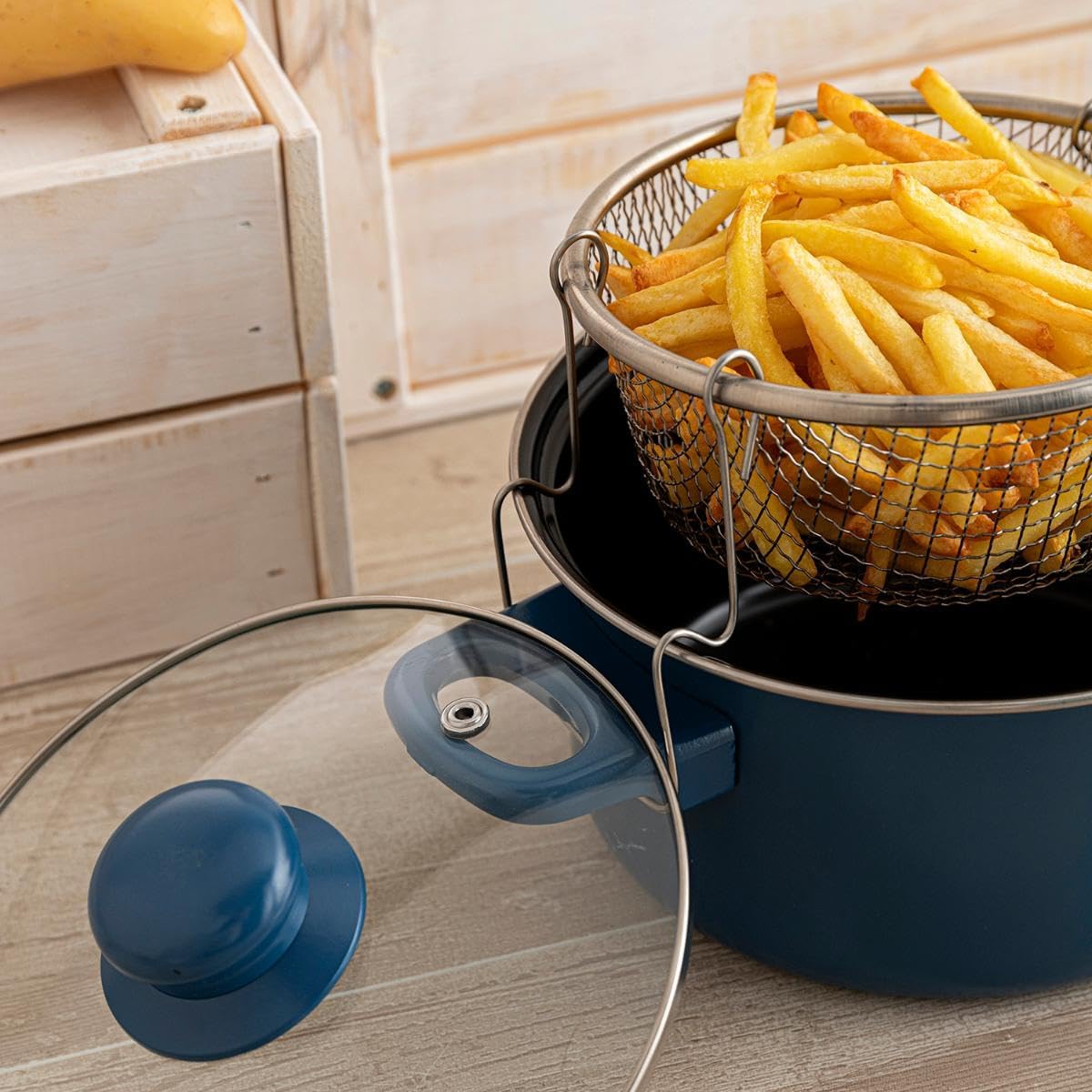 QUID Baltic fryer with carbon steel basket, 20 cm. Suitable for glass ceramic, electric, dishwasher safe, made from durable materials. Ideal for home or professional kitchen. Dishwasher safe and easy to clean.